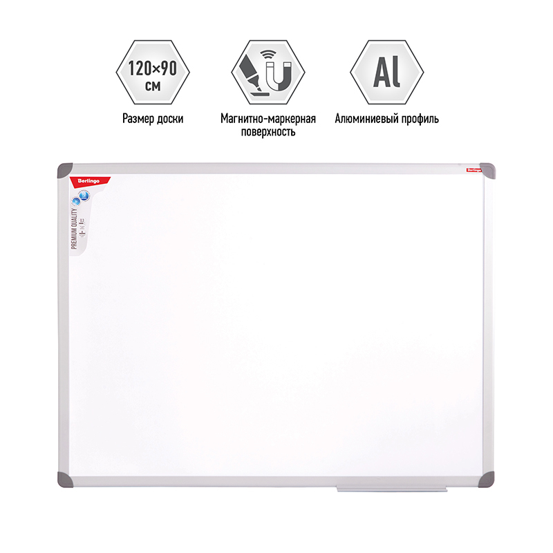 Berlingo Доска магнитно-маркерная "Premium", 90*120см, алюминиевая рамка, полочка