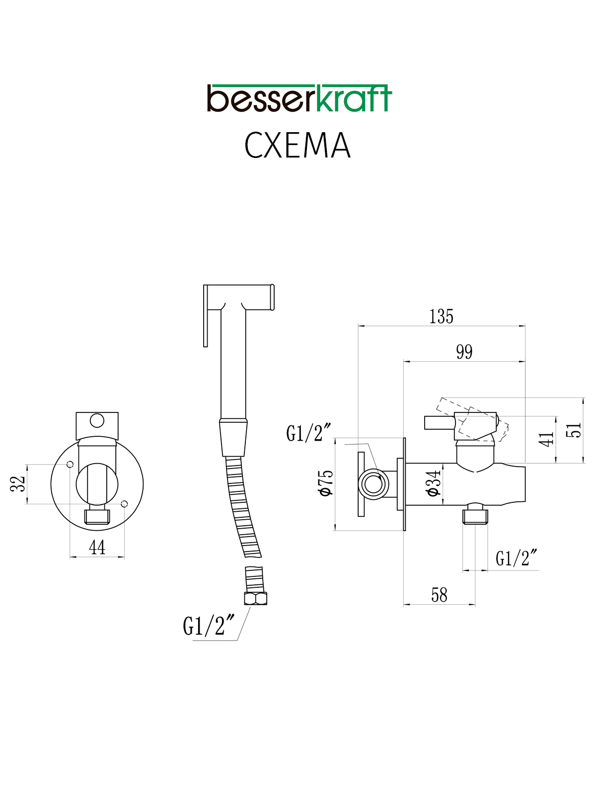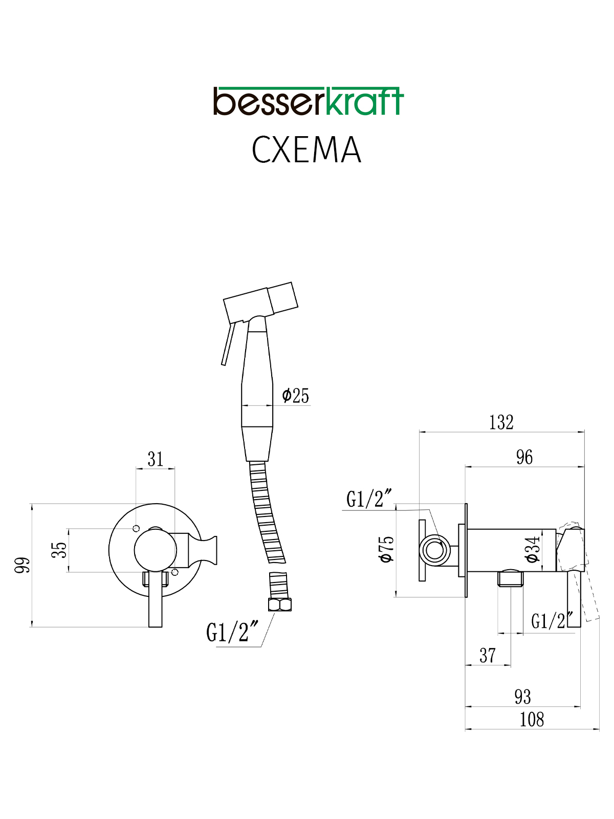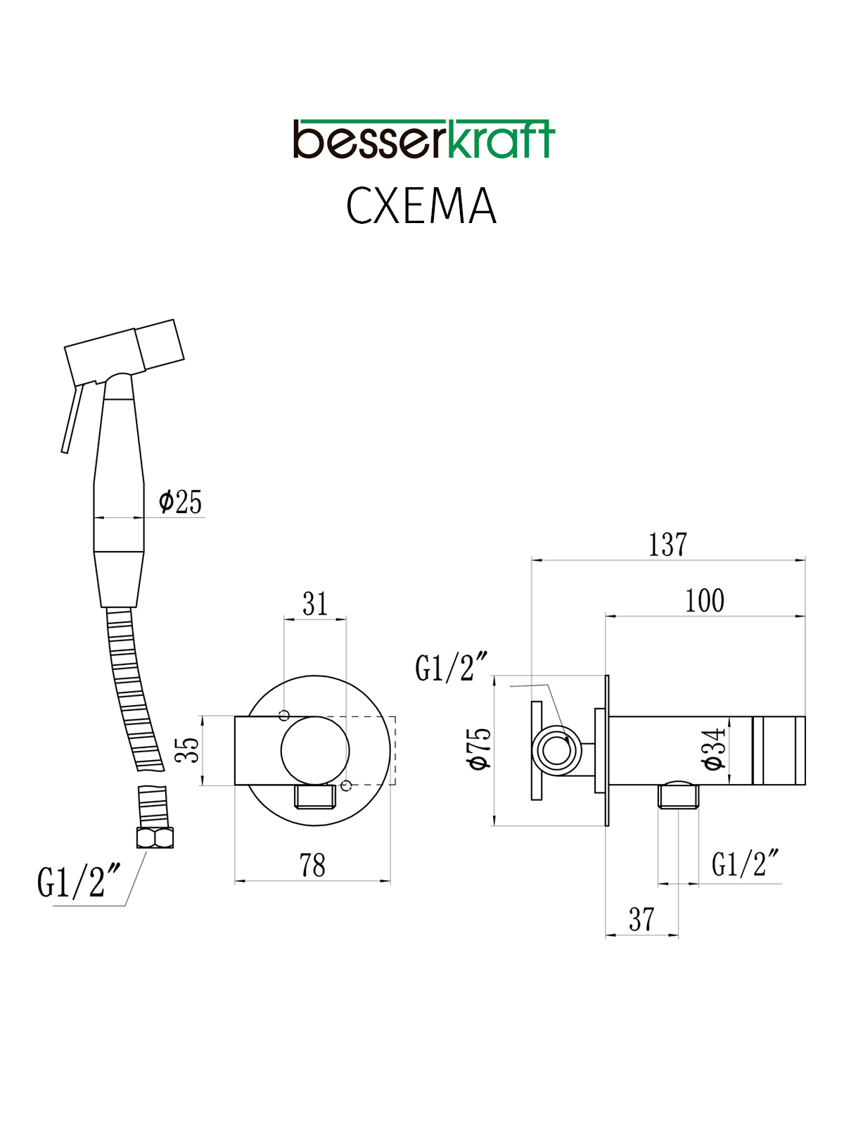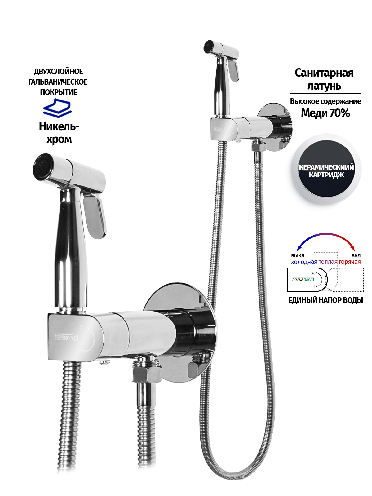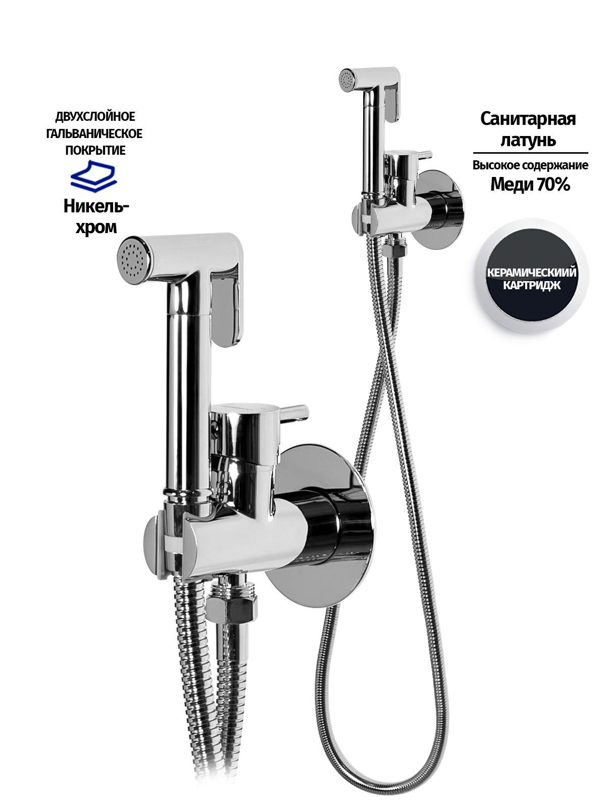 Смеситель "BesserKraft" для гигиенического душа скрытого монтажа (круглый, хром)