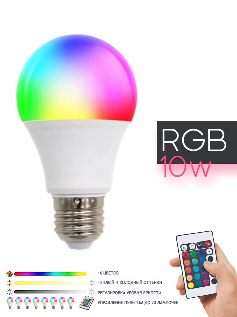 Лампочка Best Room Лампа RGB 10W с пультом, RGB свет, E27, 10 Вт