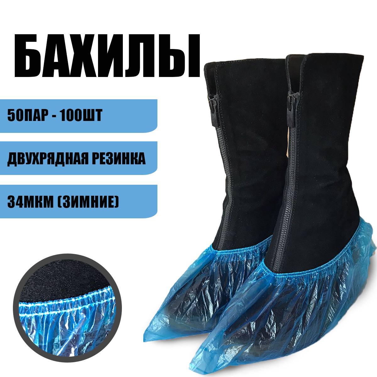 Бахилы Прочные, синие, 100шт (50пар), размер 40х13см, толщина 34мкм, 3.8г, ПНД, BestGoods