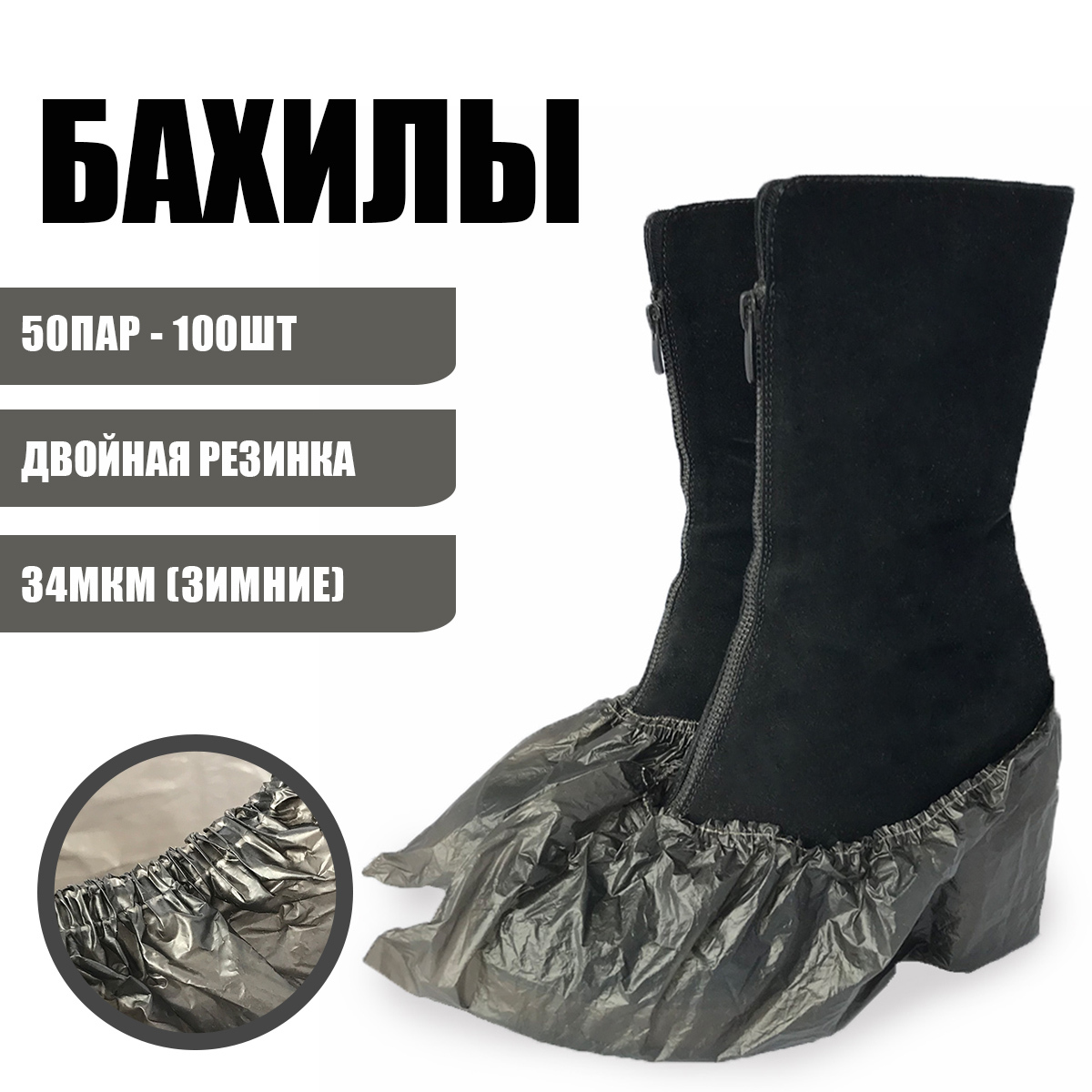Бахилы Прочные, черные, 100шт (50пар), размер 40х13см, толщина 34мкм, 3.8г, ПНД, BestGoods