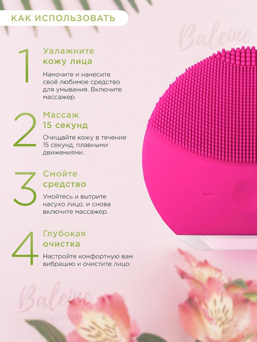 Массажная ультразвуковая щетка для умывания лица FOREVER LINA MINI, голубой