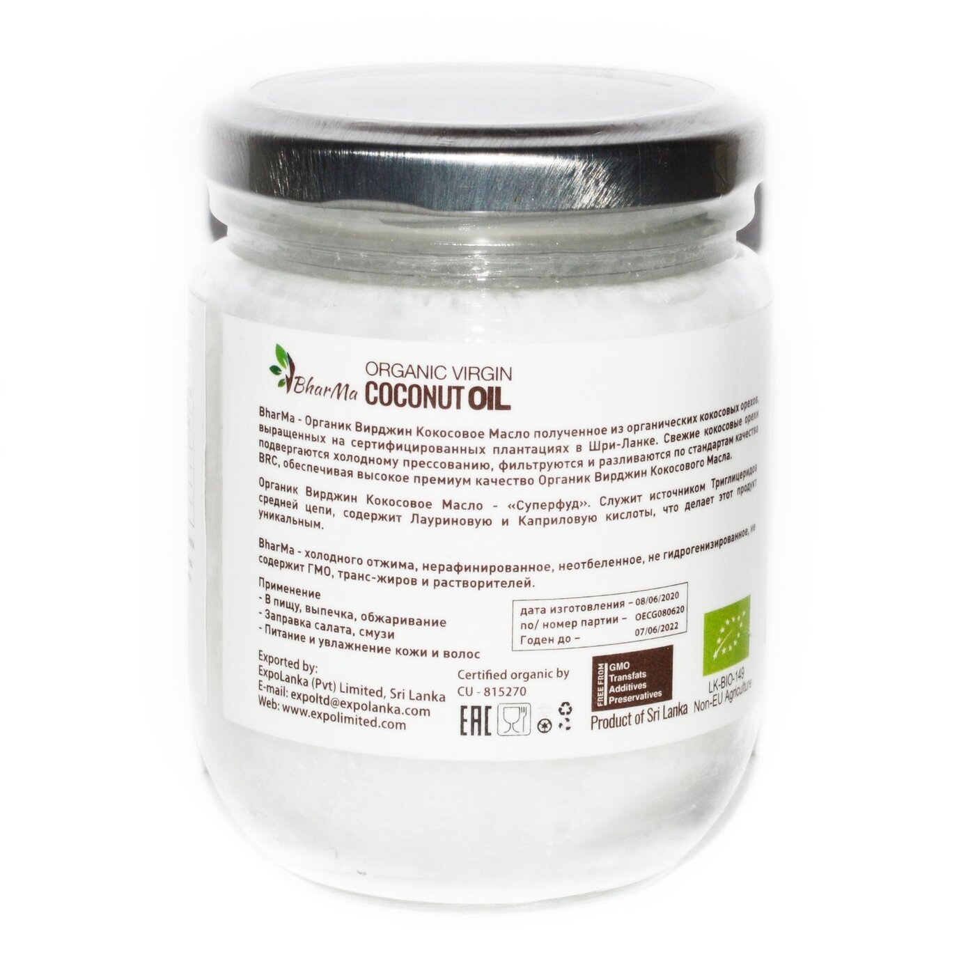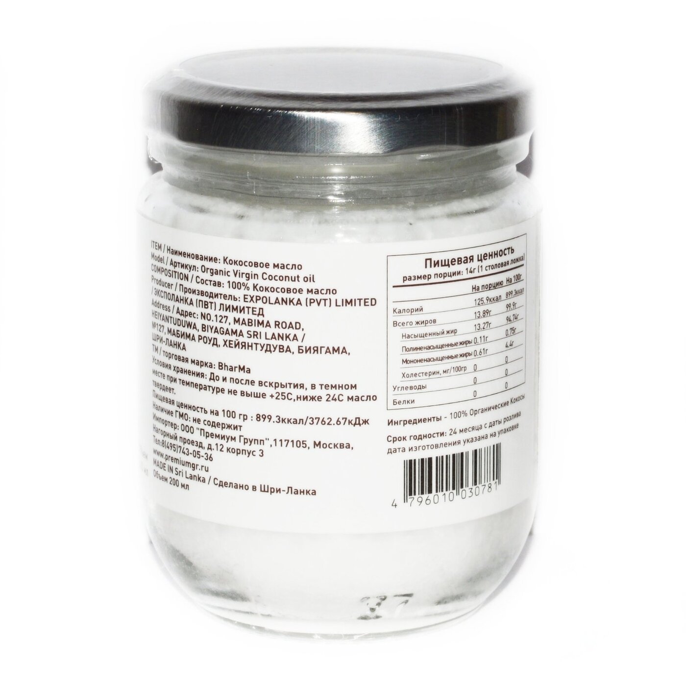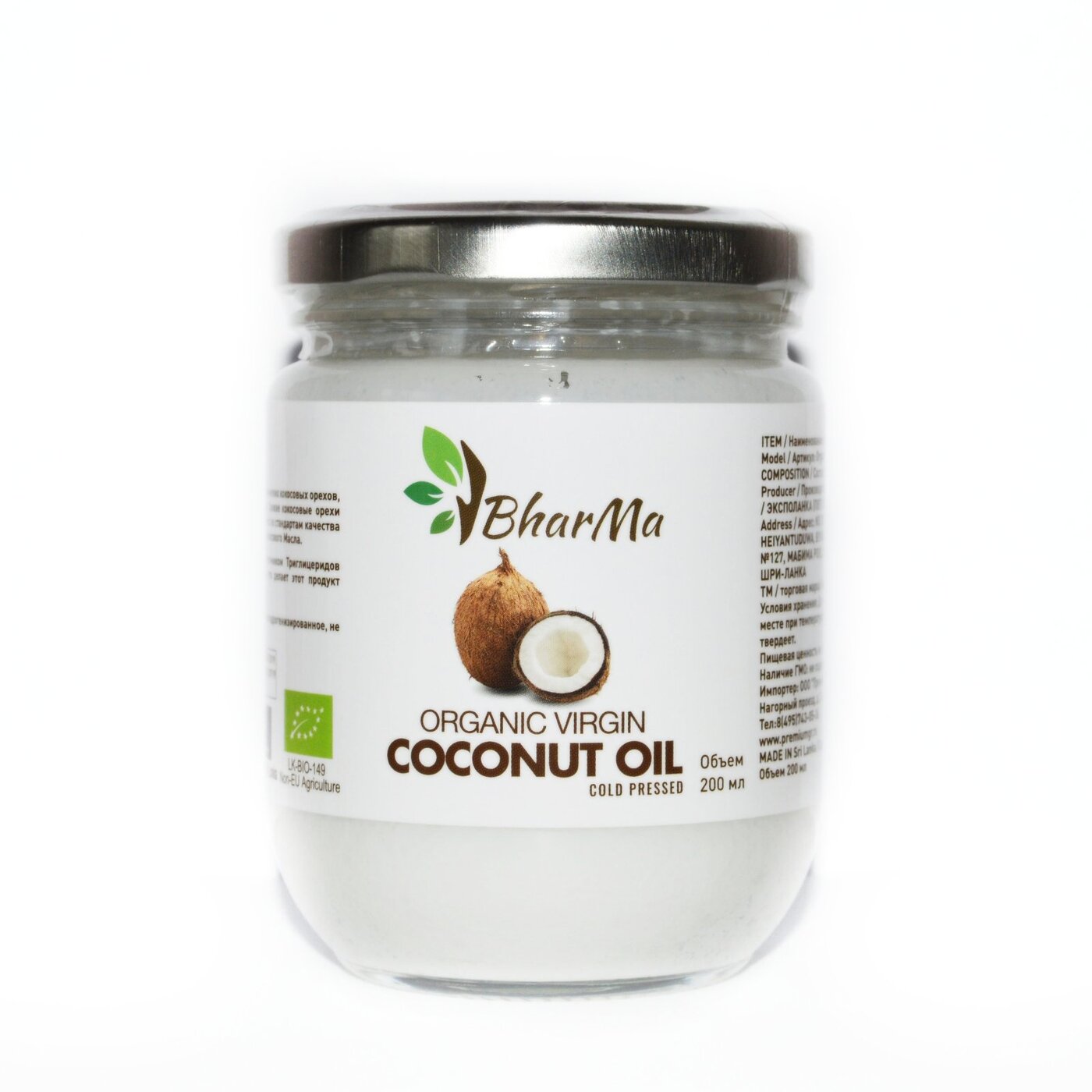 Кокосовое масло BharMa,100% натуральное, первый холодный отжим, нерафинированное,200 мл.
