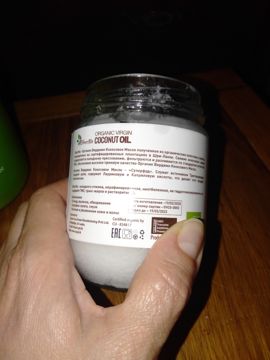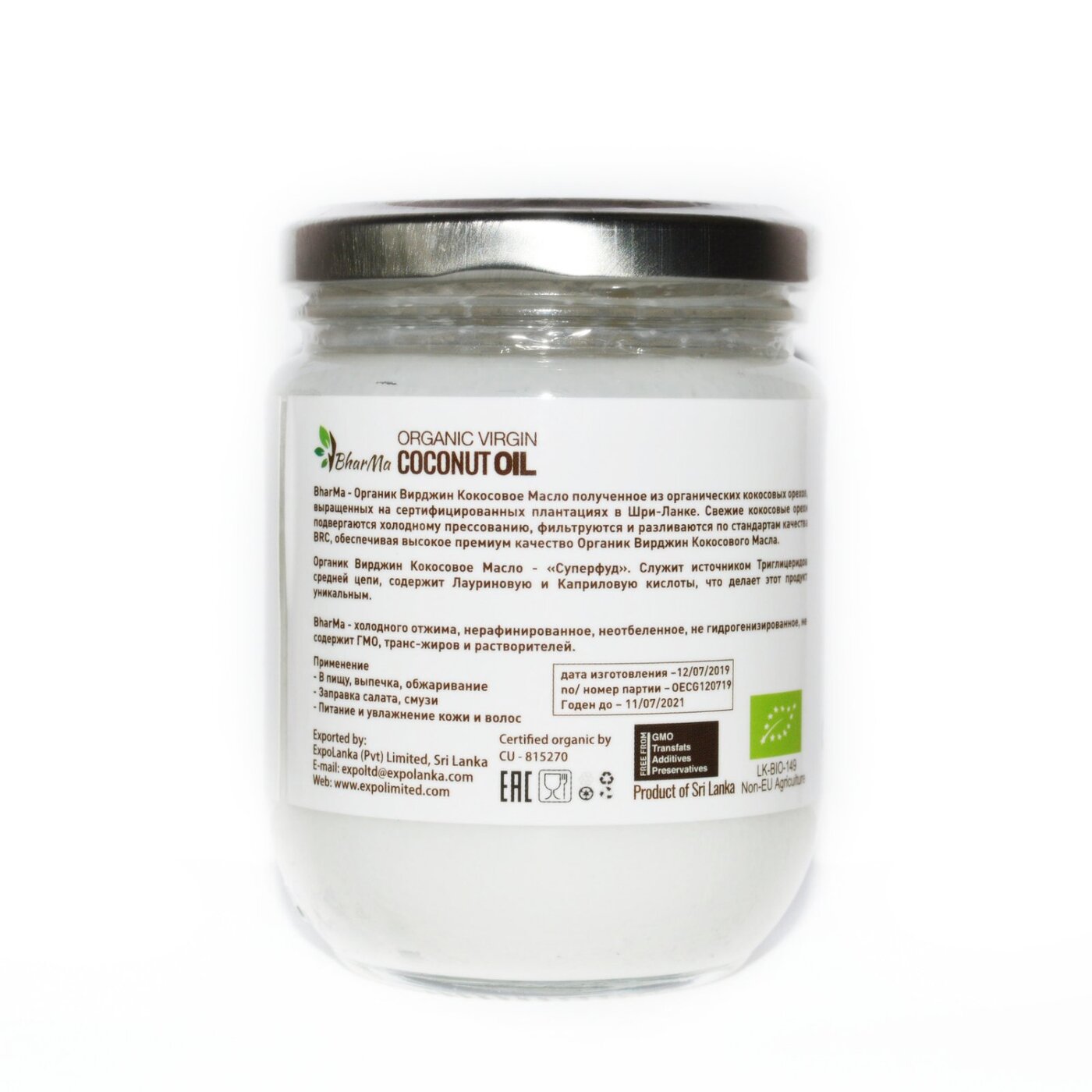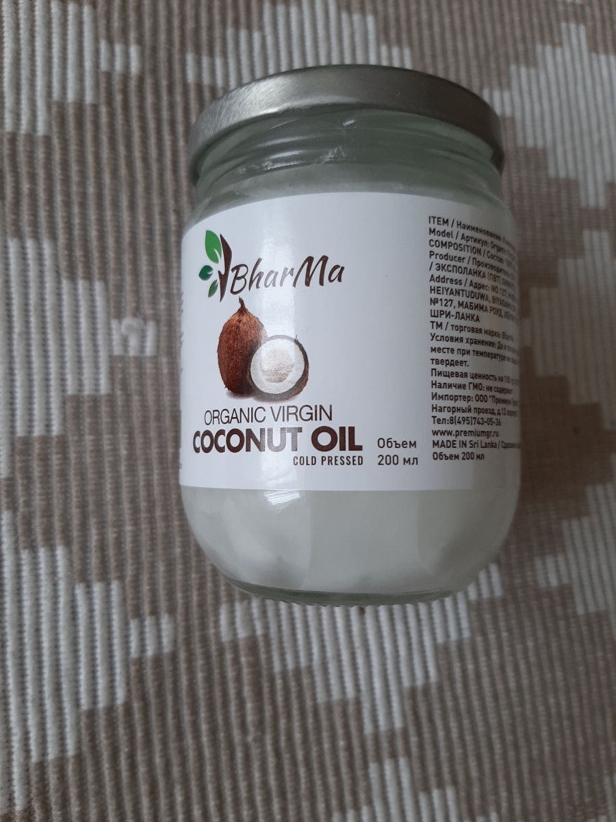 Кокосовое масло BharMa,100% натуральное, первый холодный отжим, нерафинированное,200 мл.