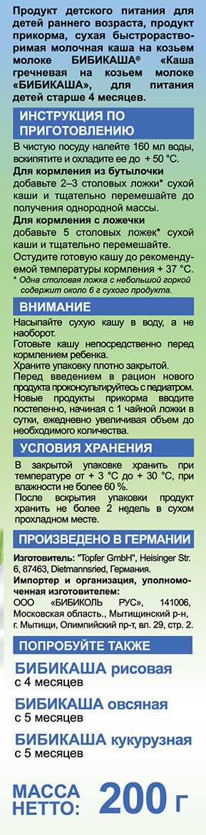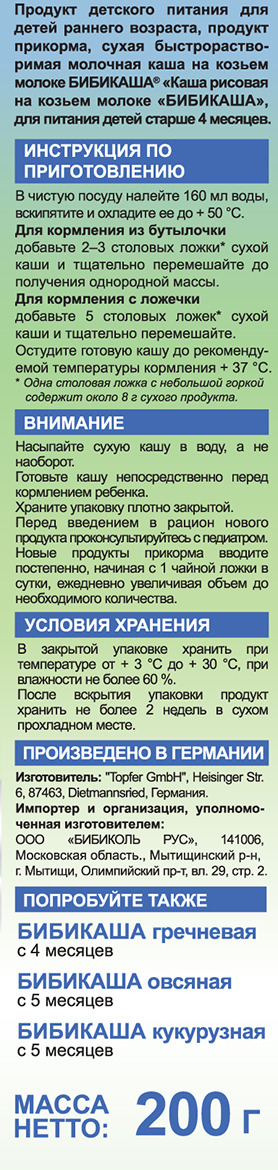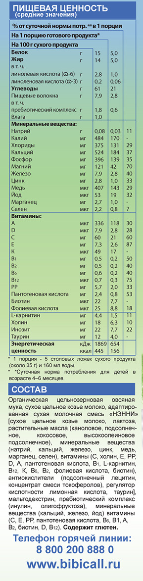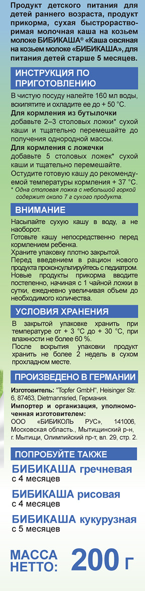 Бибикаша каша овсяная на козьем молоке, с 5 месяцев, 200 г