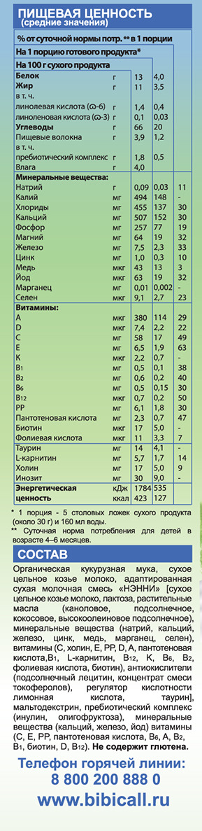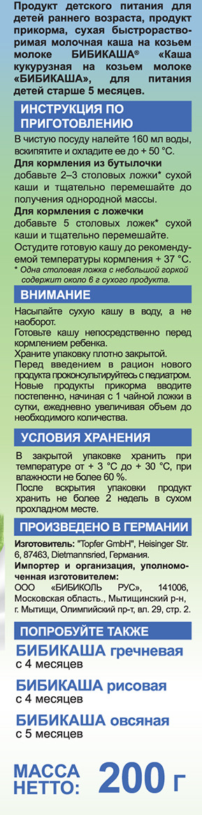 Бибикаша каша кукурузная на козьем молоке, с 5 месяцев, 200 г
