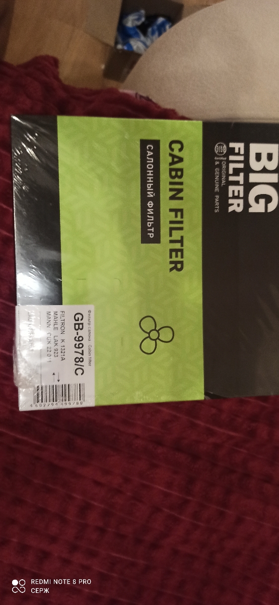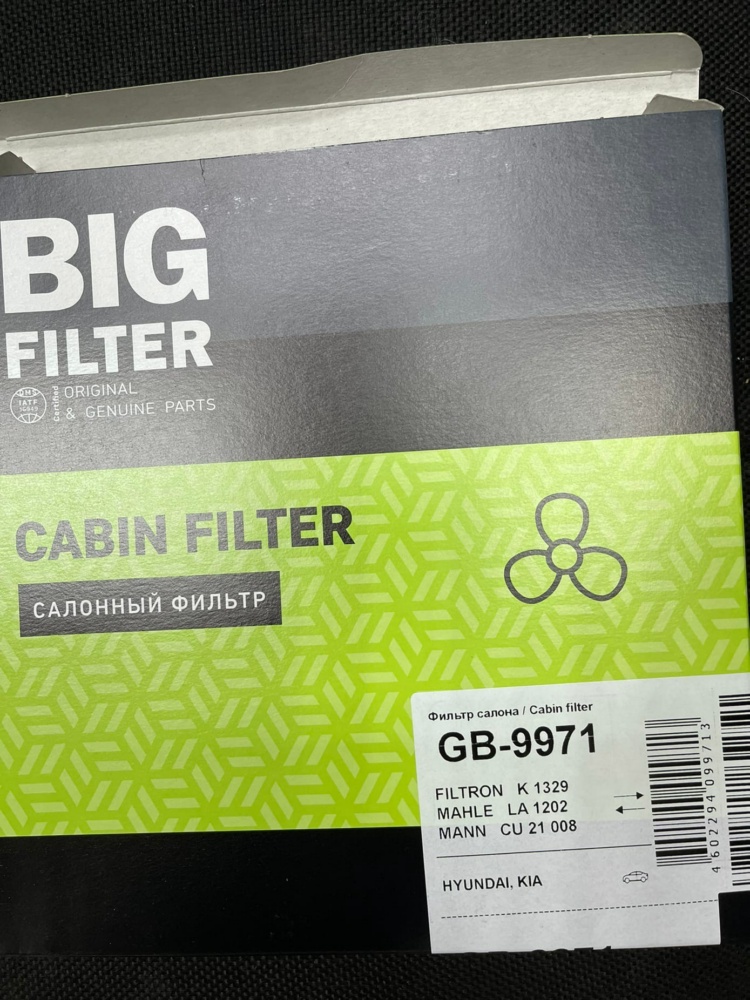 Фильтр салона угольный "LADA Vesta, X-RAY", BIG Filter GB-9978/C