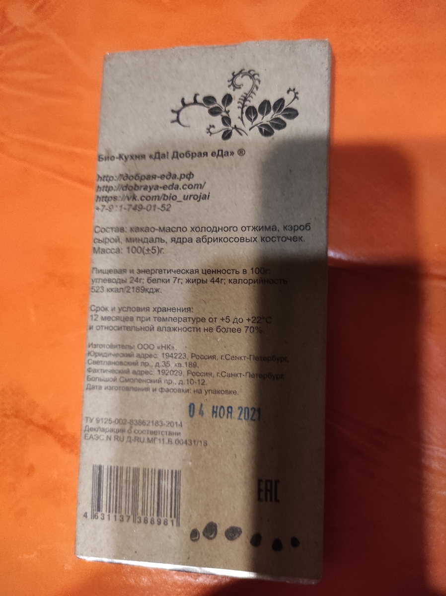 Халва новая "Шоколадная с какао" Био-Кухни "Да! Добрая еДа" без сахара 150г