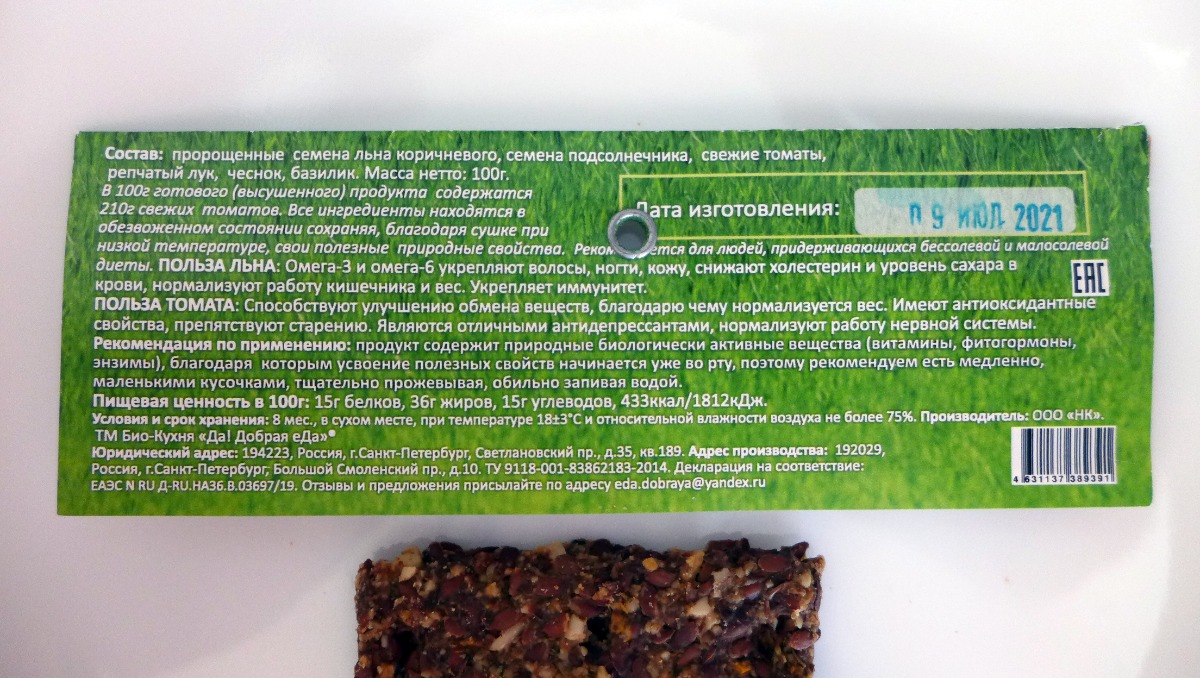 Хлебцы с проростками белого льна "Томат без соли" без глютена Веган 70г Био-Кухни "Да! Добрая еДа"