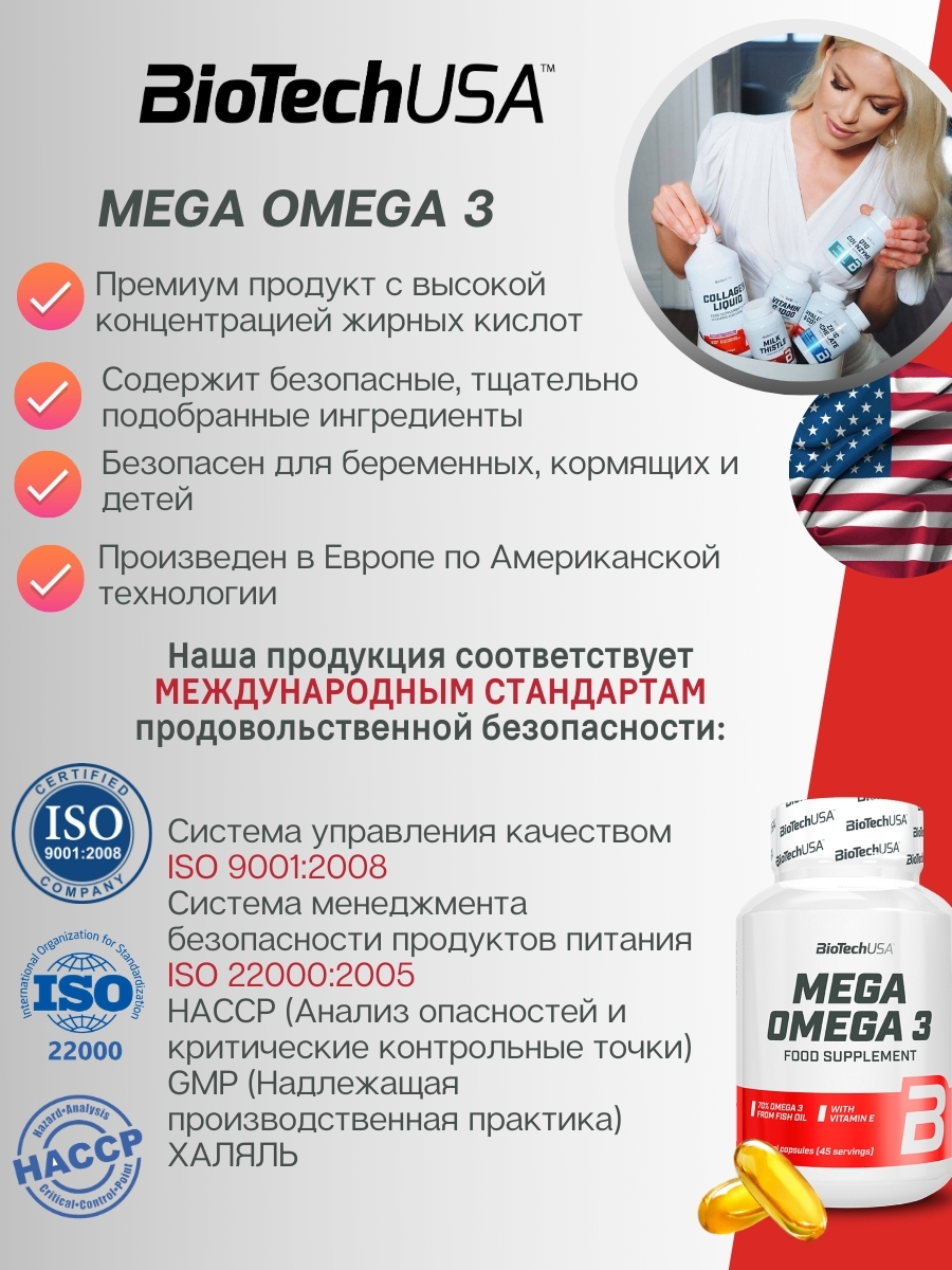 Жирные омега кислоты Омега-3 Biotech USA Mega Omega 3 90 капс.