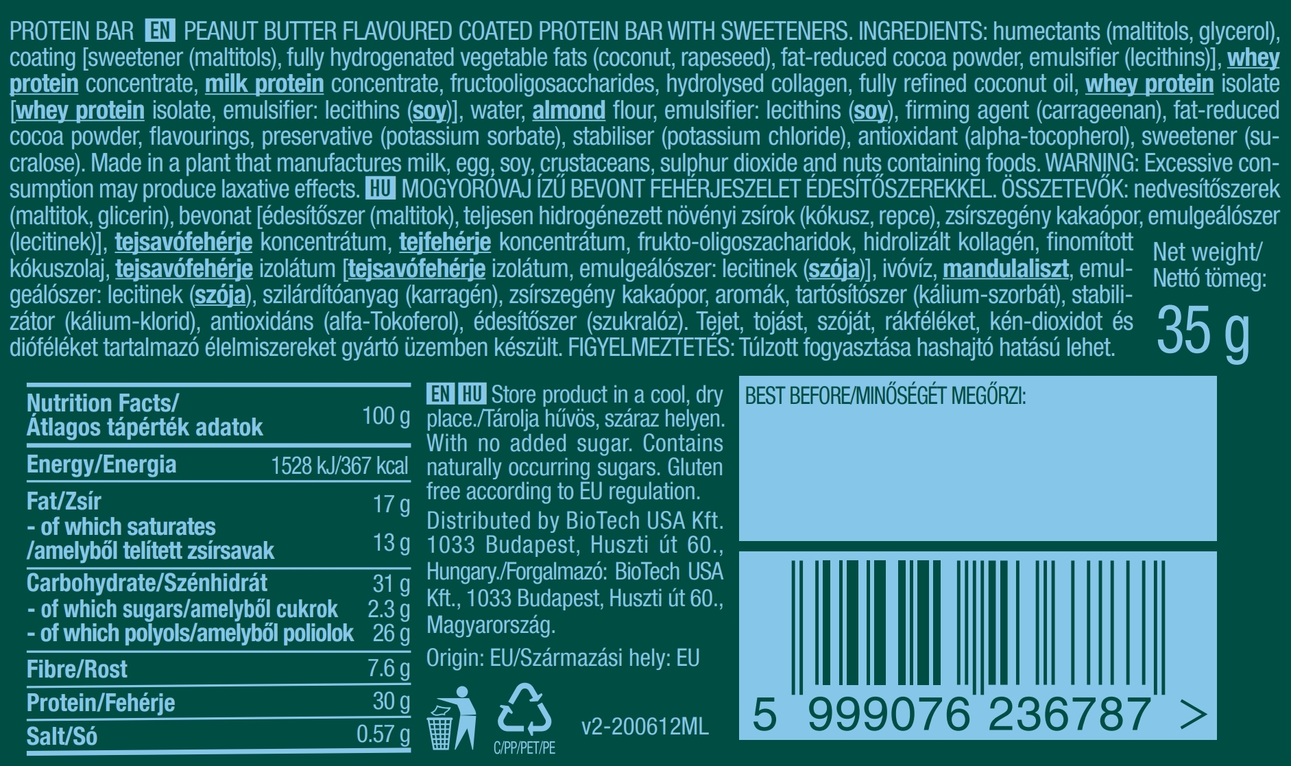 Протеиновый батончик BiotechUSA Protein Bar 35 г арахисовая паста (шоубокс - 20 шт)