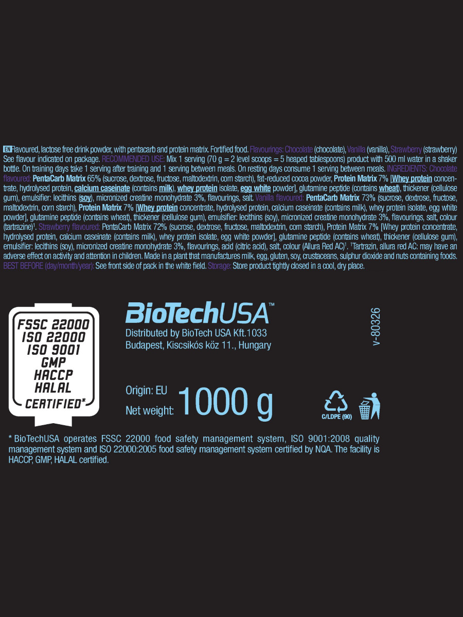 Гейнер BiotechUSA Muscle Mass 1000 г клубника