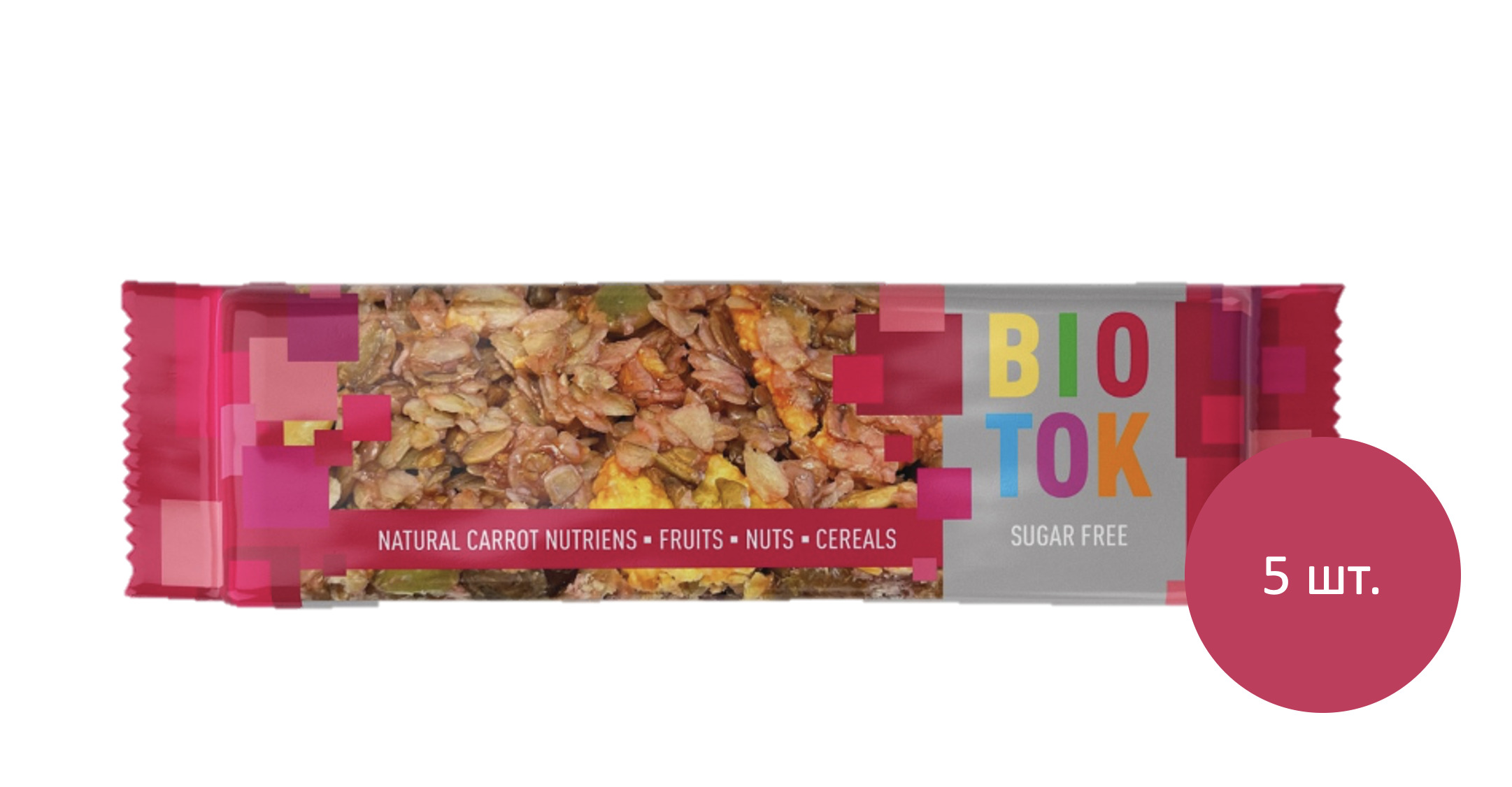 Батончик злаковый, без сахара, Вишнёвая гранола с морковью, здоровые мюсли, BIOTOK, Виталад