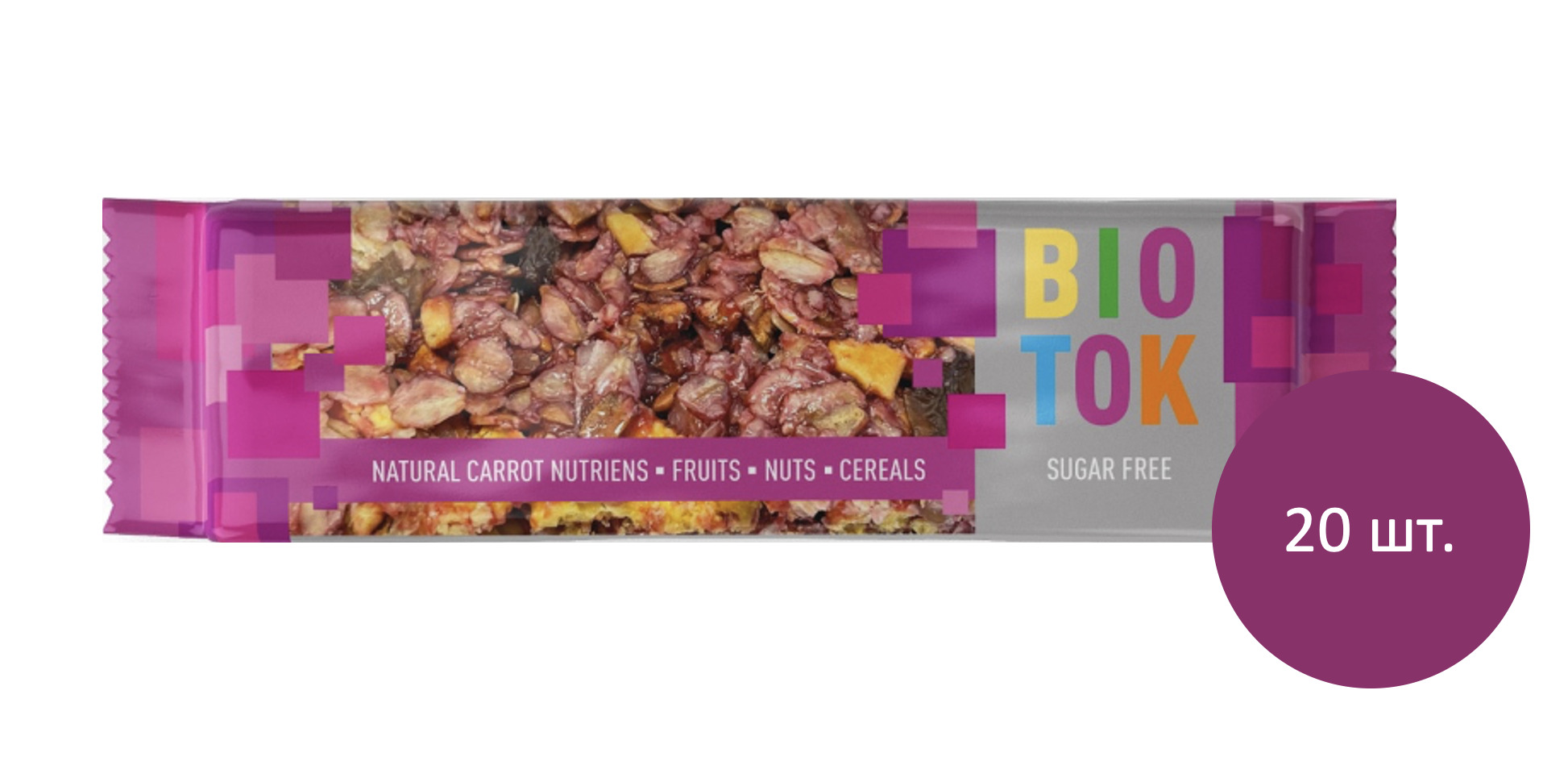 Батончик злаково-овощной BIOTOK от Виталад Вишнёвая гранола с морковью, 20 шт