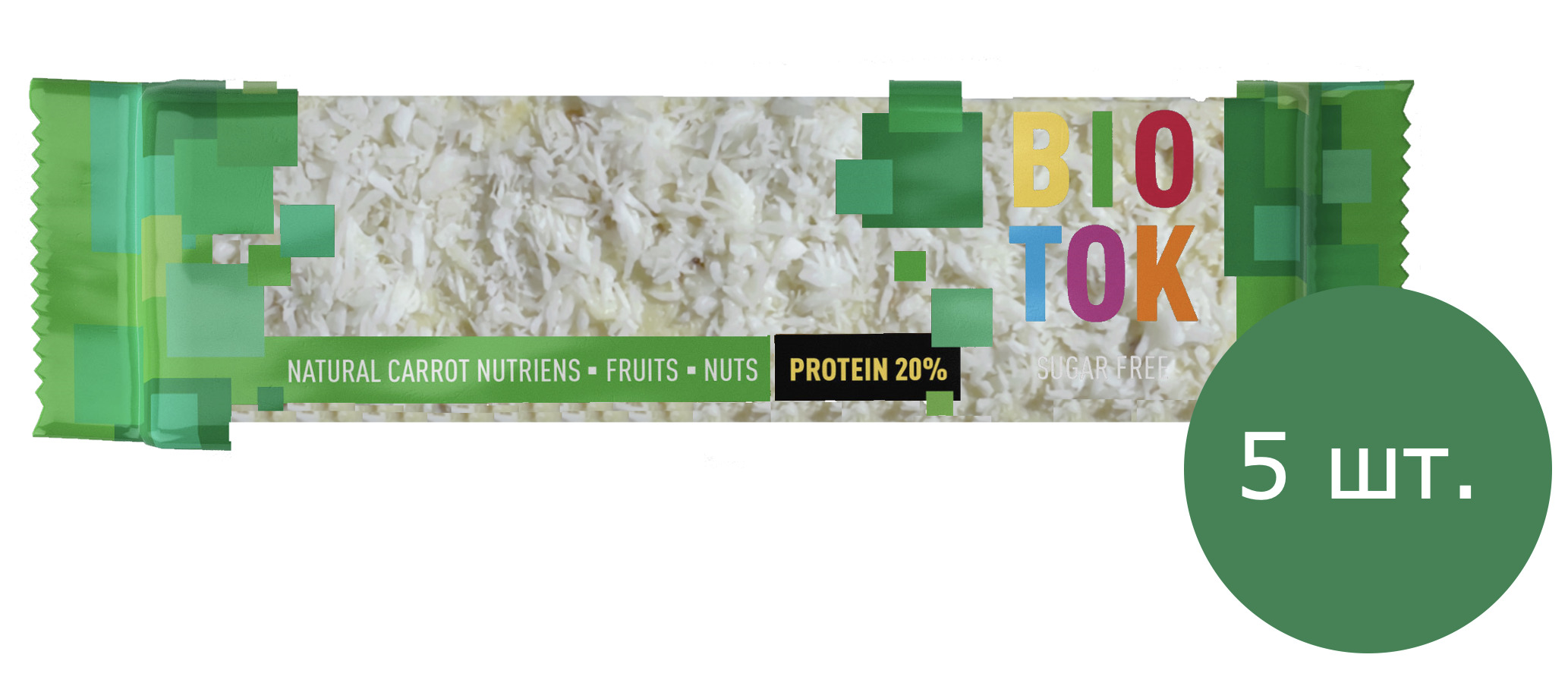 Батончик протеиновый коксовый BIOTOK, без сахара, Орехово-овощной, Виталад, 5 шт