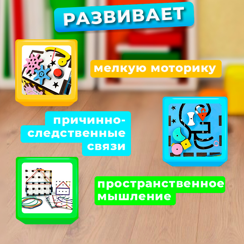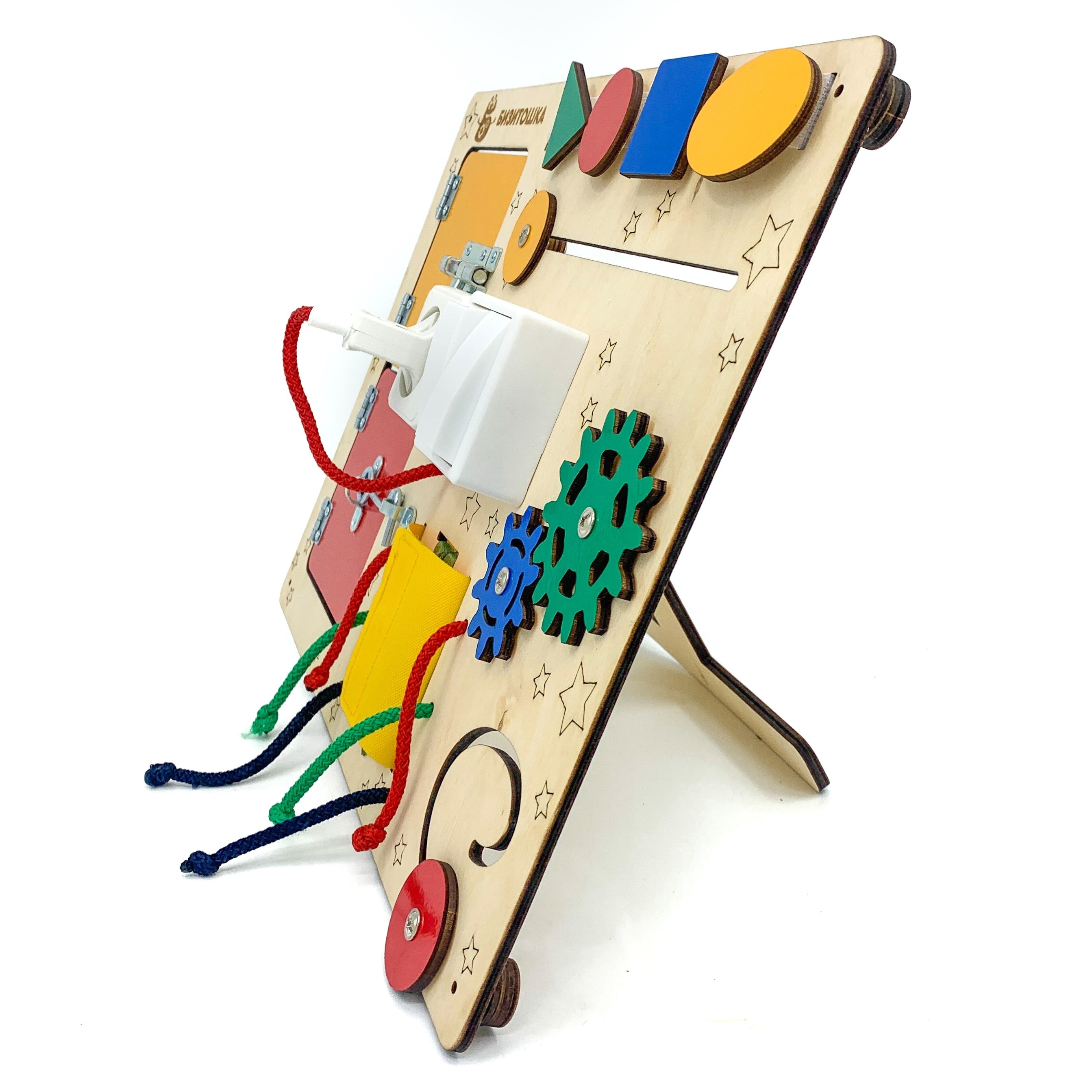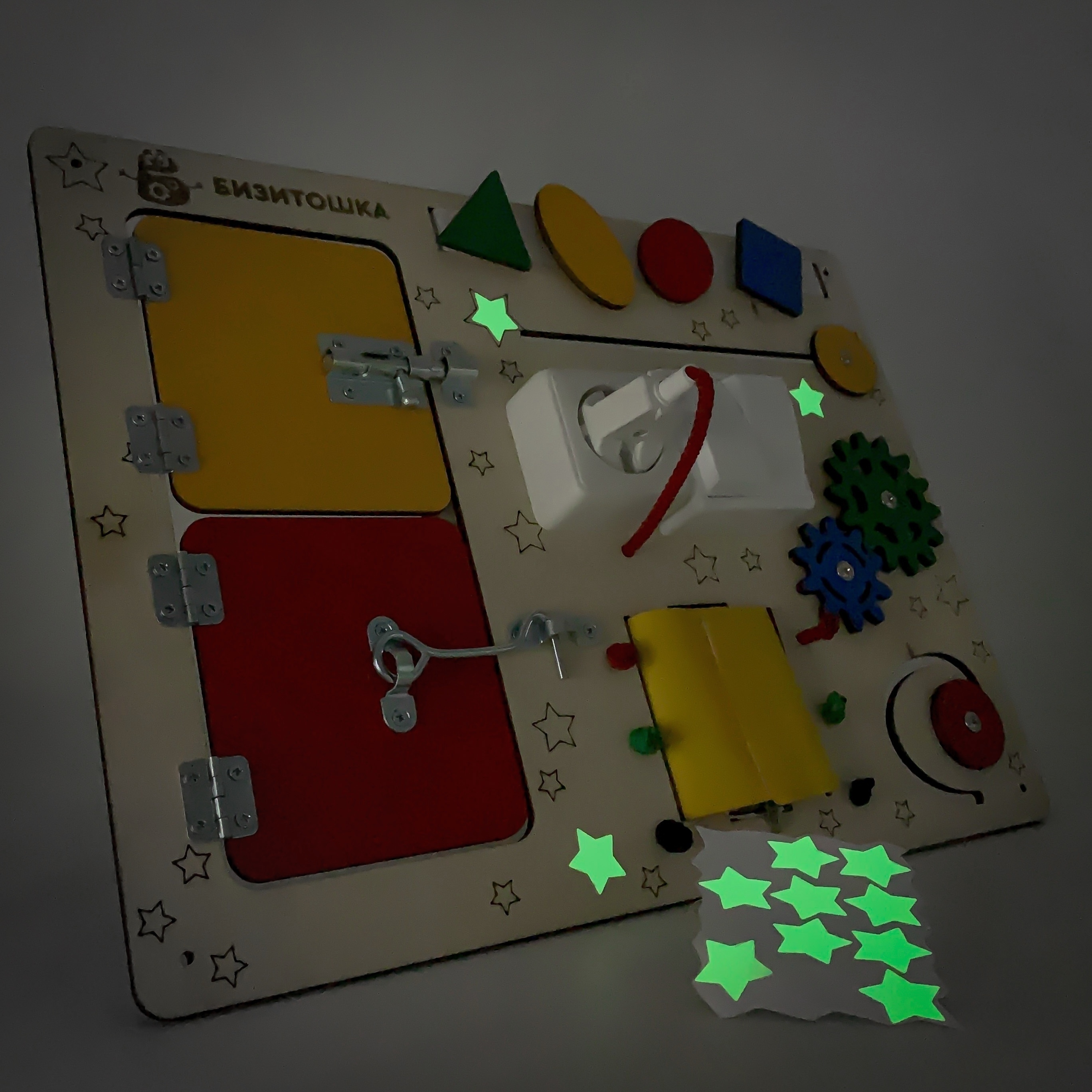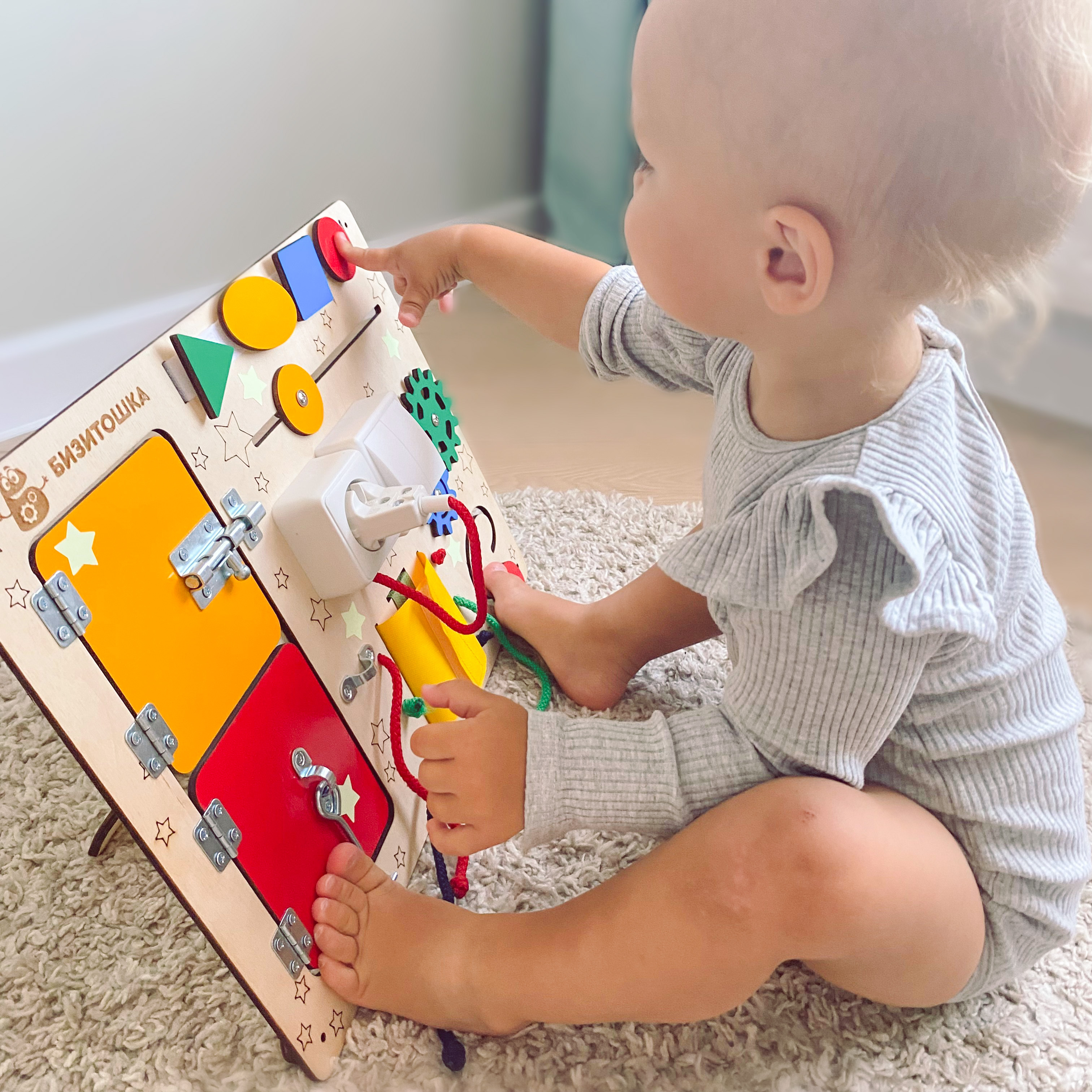 Бизиборд Бизитошка / Уникальный развивающий центр Монтессори / Бизидом Мини со светом и геобордом!