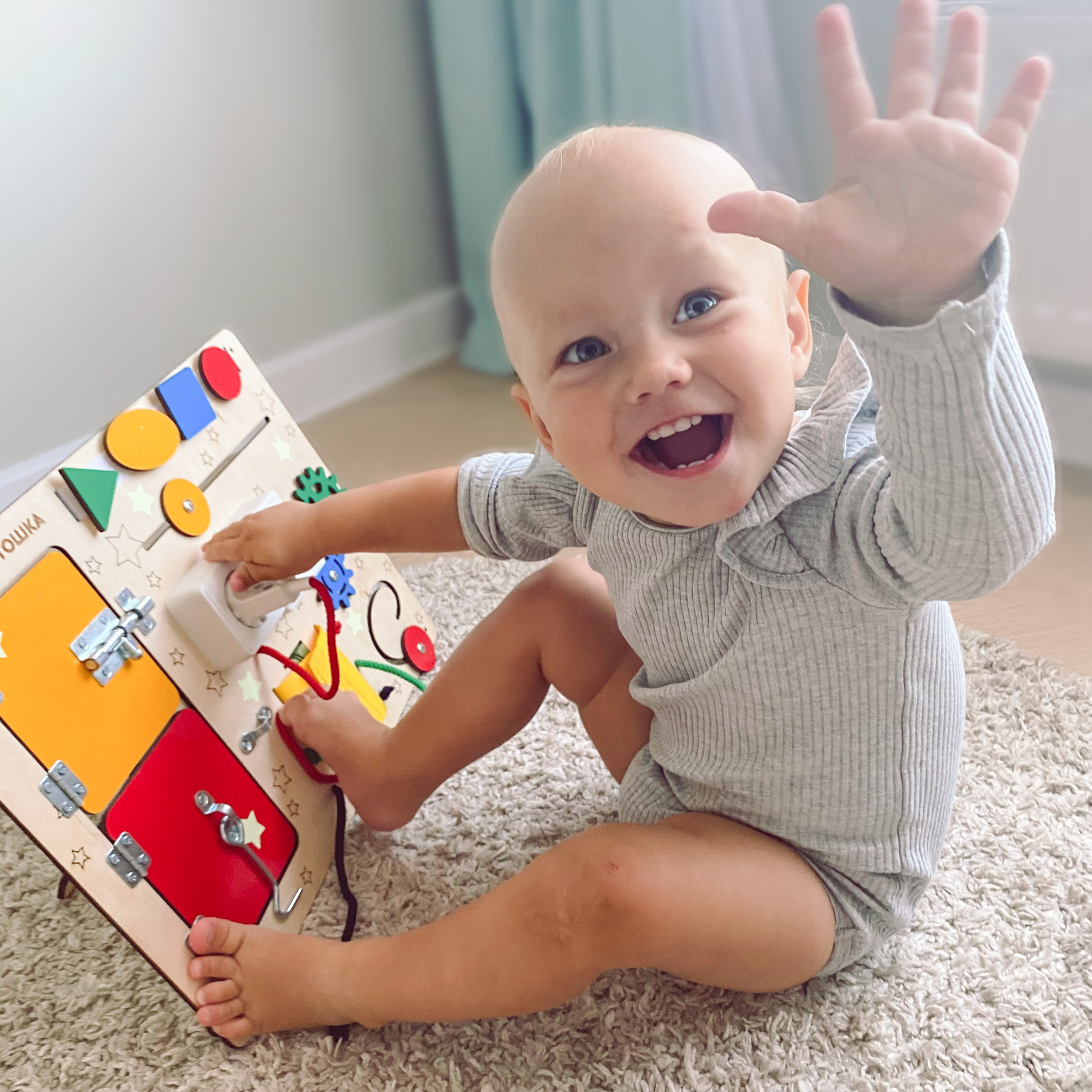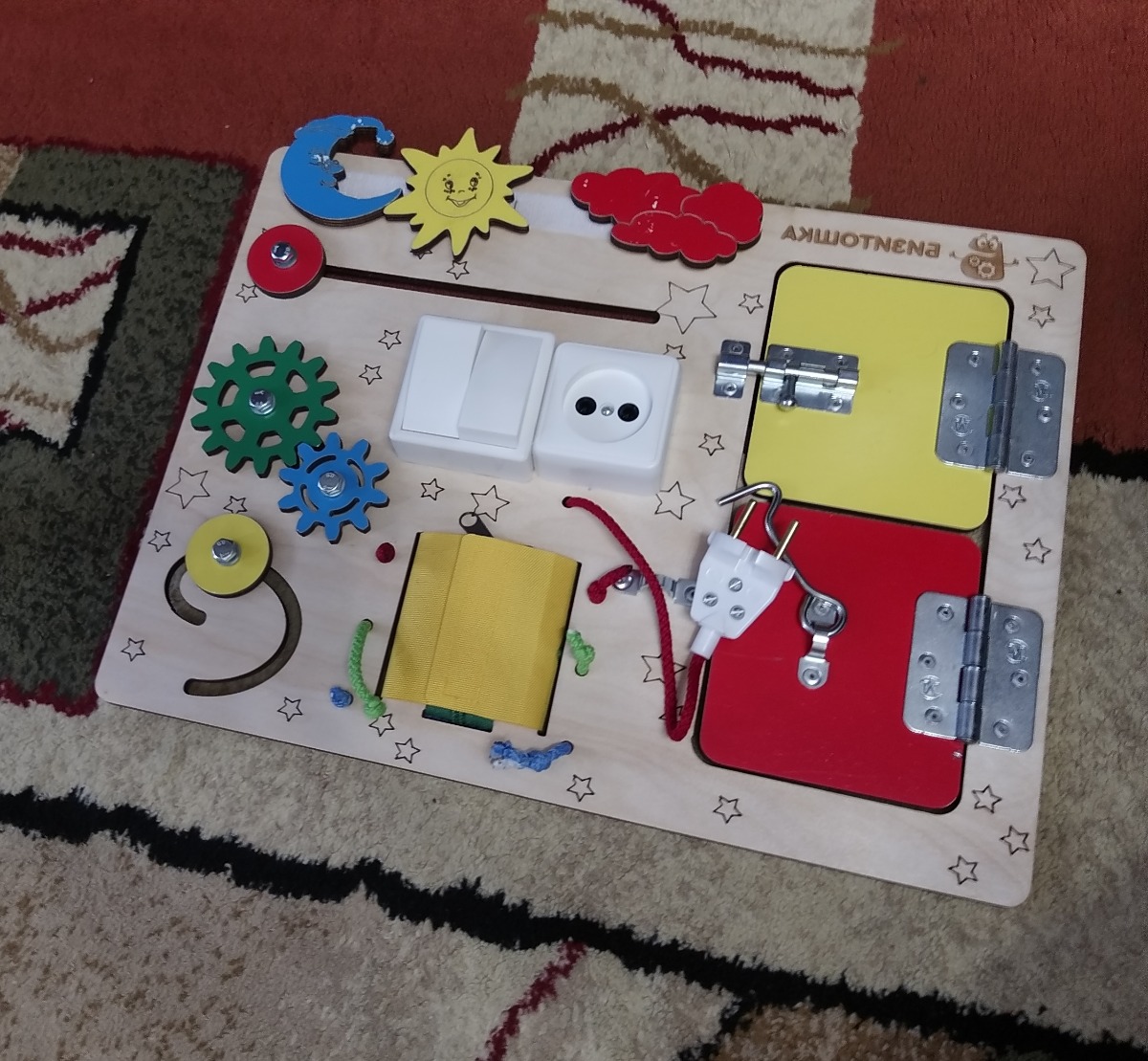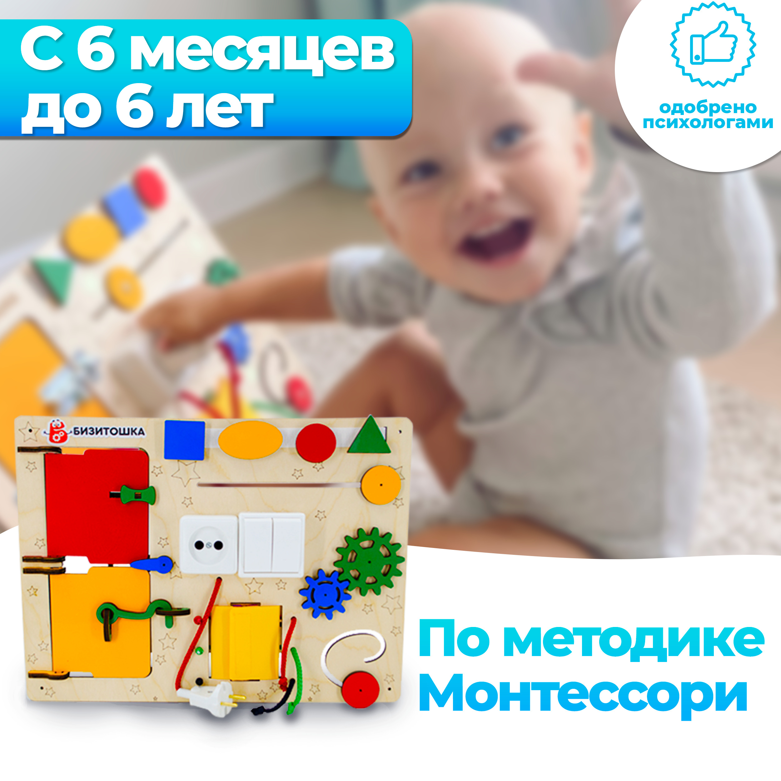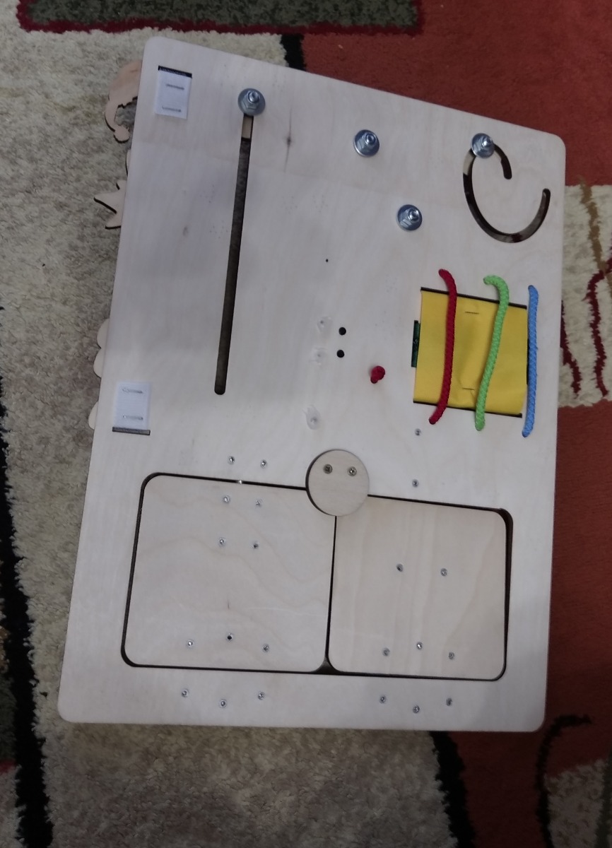 Бизиборд Бизитошка / Уникальный развивающий центр Монтессори / Бизидом Мини со светом и геобордом!