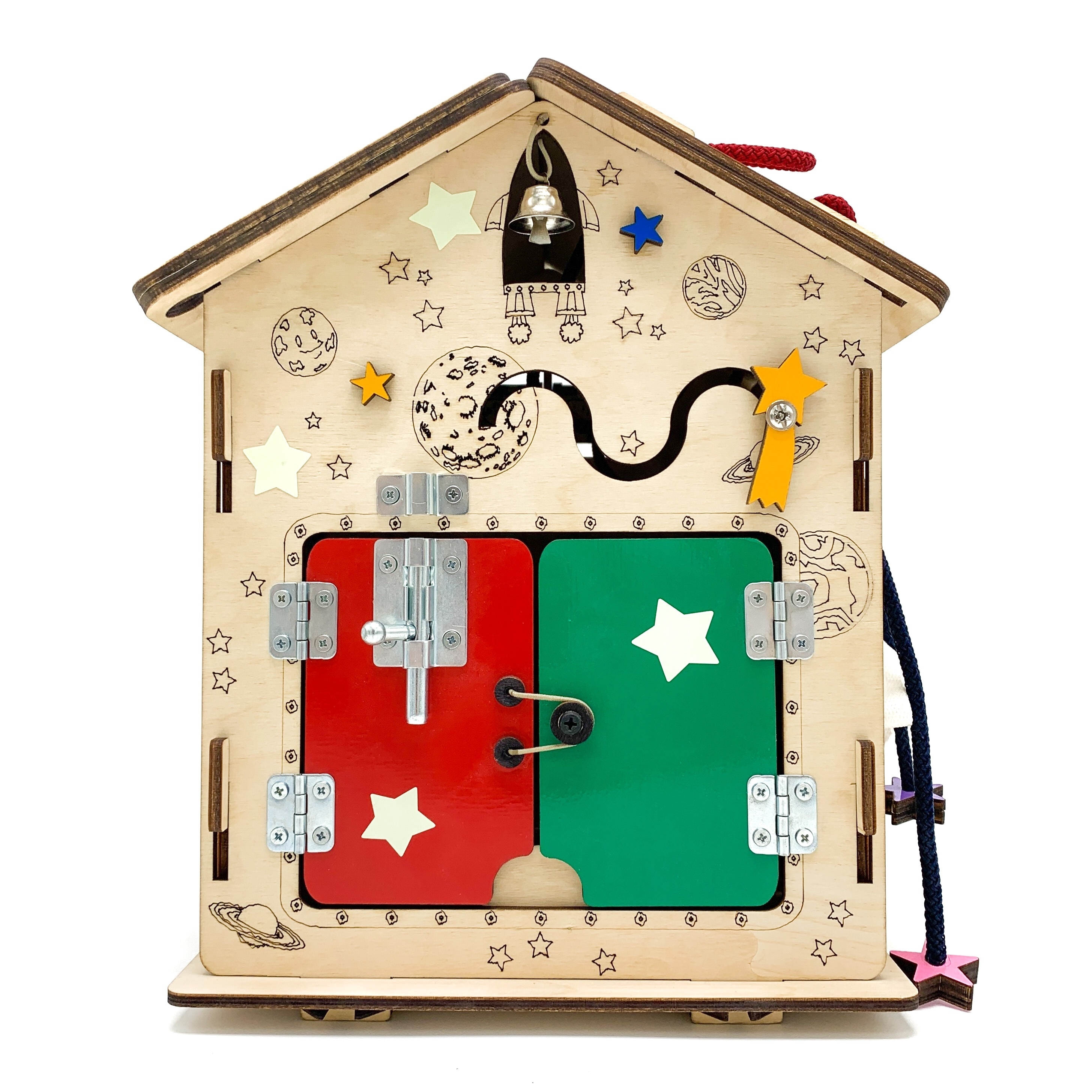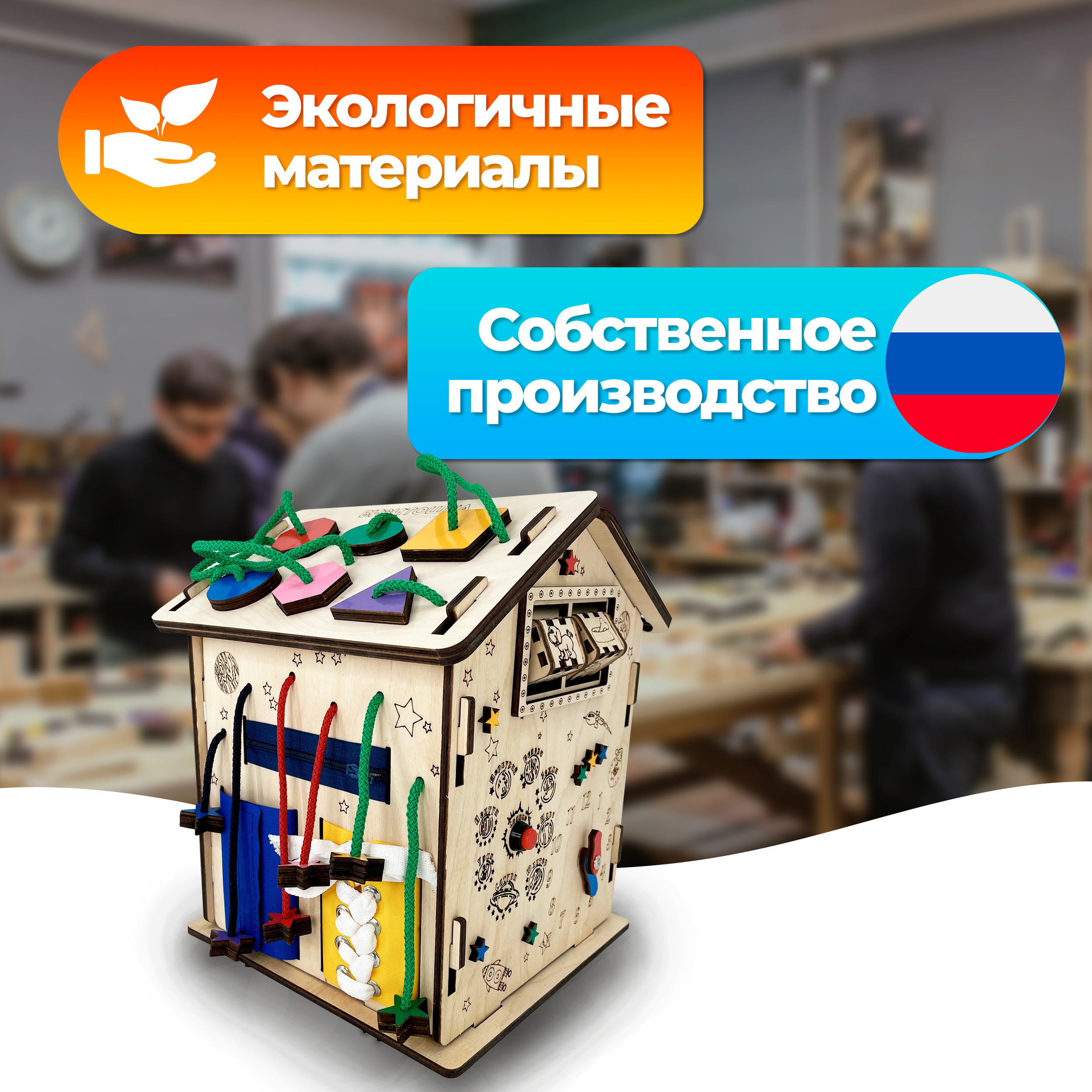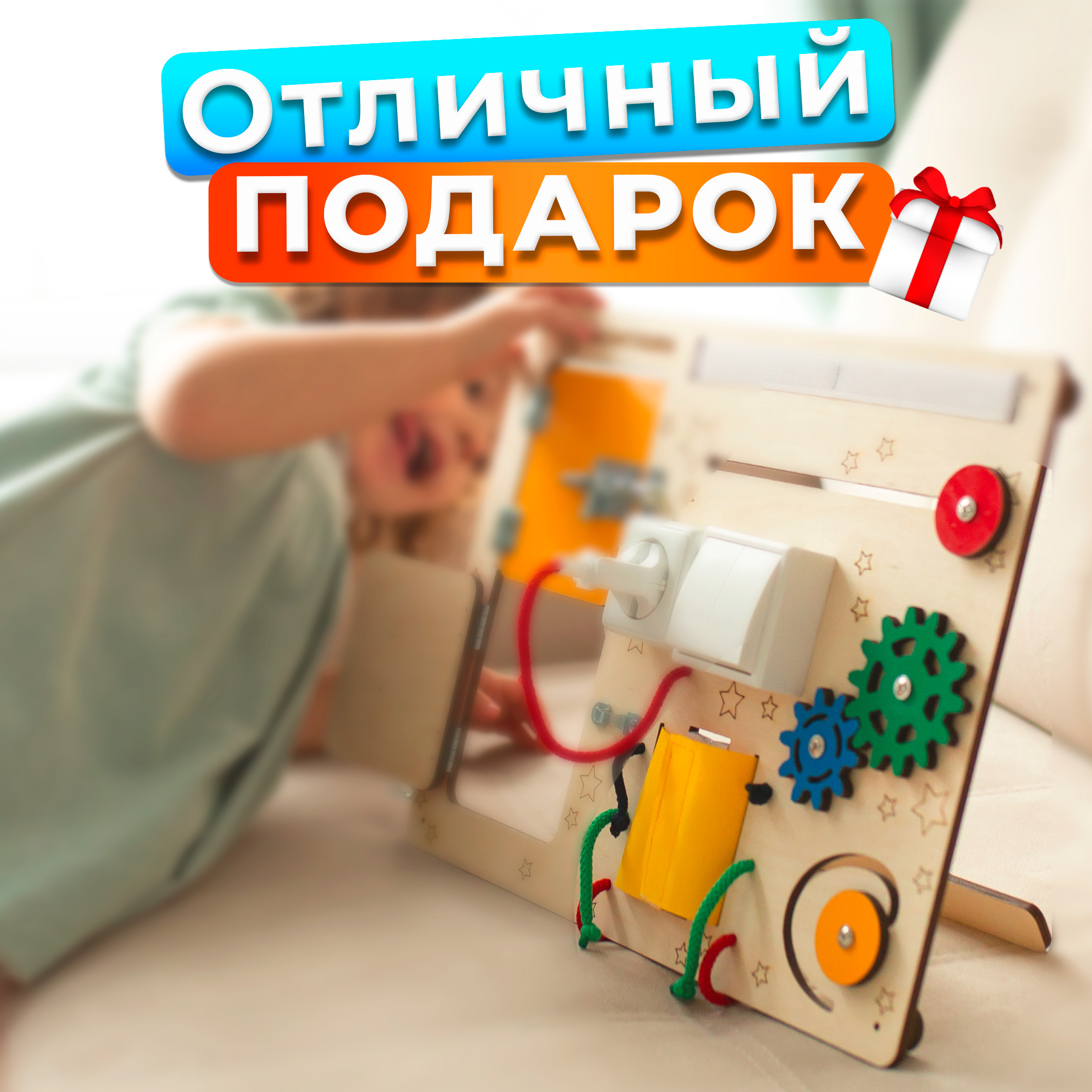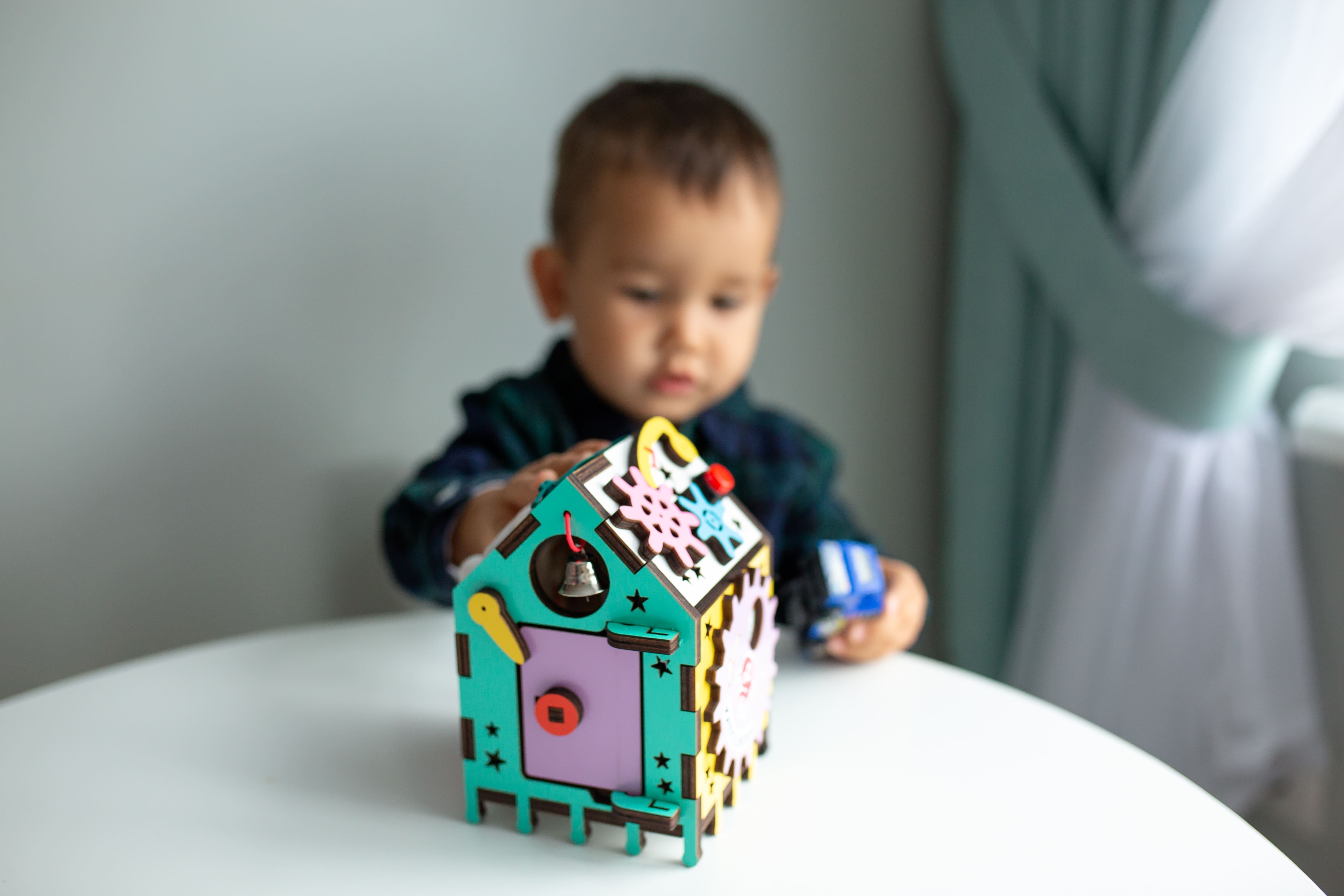 Бизиборд Бизитошка / Уникальный развивающий центр Монтессори / Бизидом Мини со светом и геобордом!