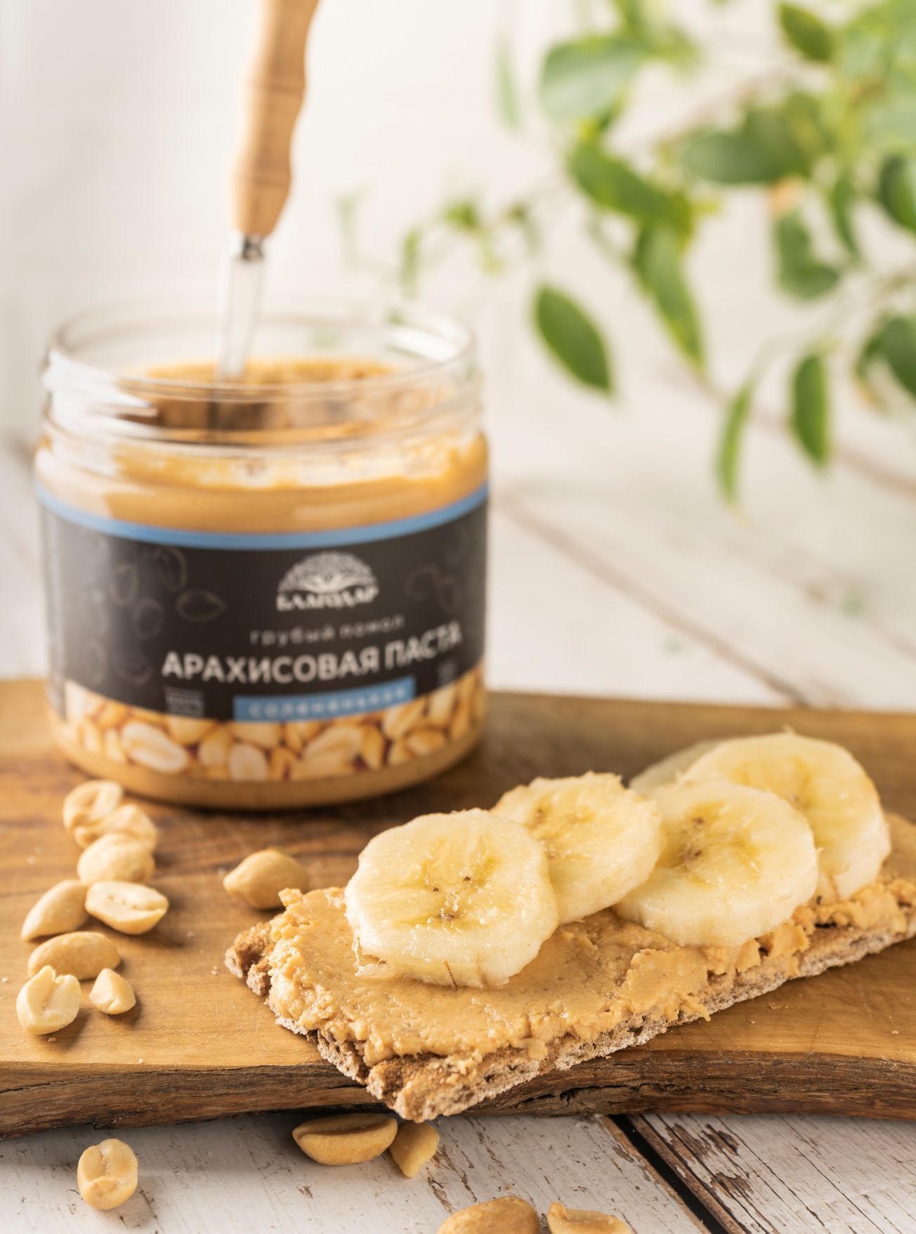 Арахисовая паста БЛАГОДАР "Солененькая", грубый помол, без сахара, 525 гр