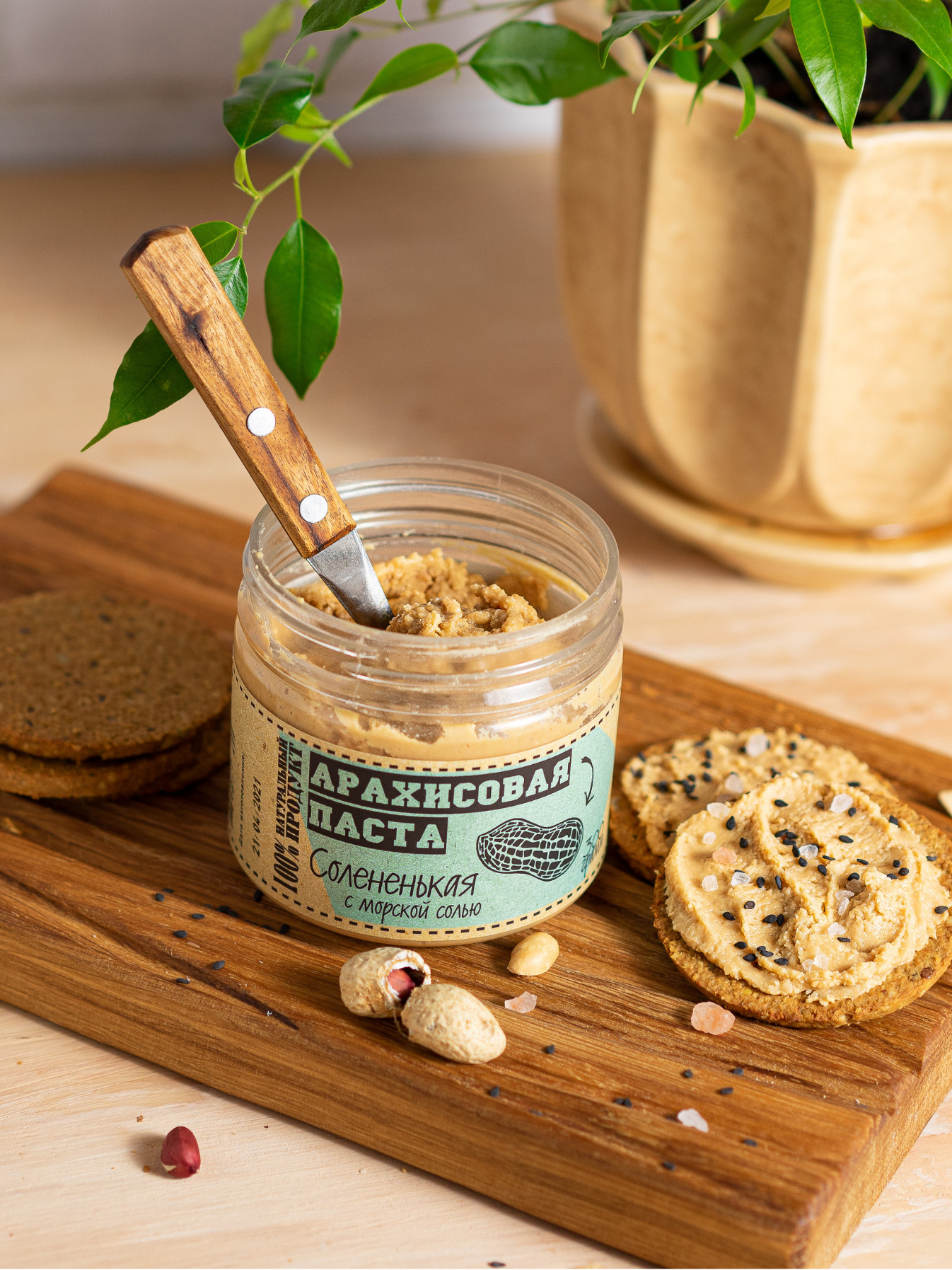 Арахисовая паста БЛАГОДАР "Солененькая", с кусочками арахиса и морской солью, без сахара, 300 гр