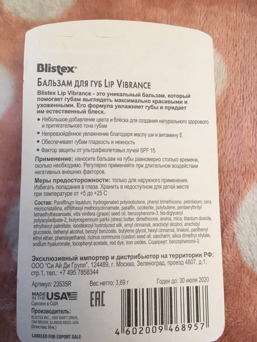Blistex Lip Vibrance Бальзам для губ "Нежный оттенок и сияние, увлажнение и защита"