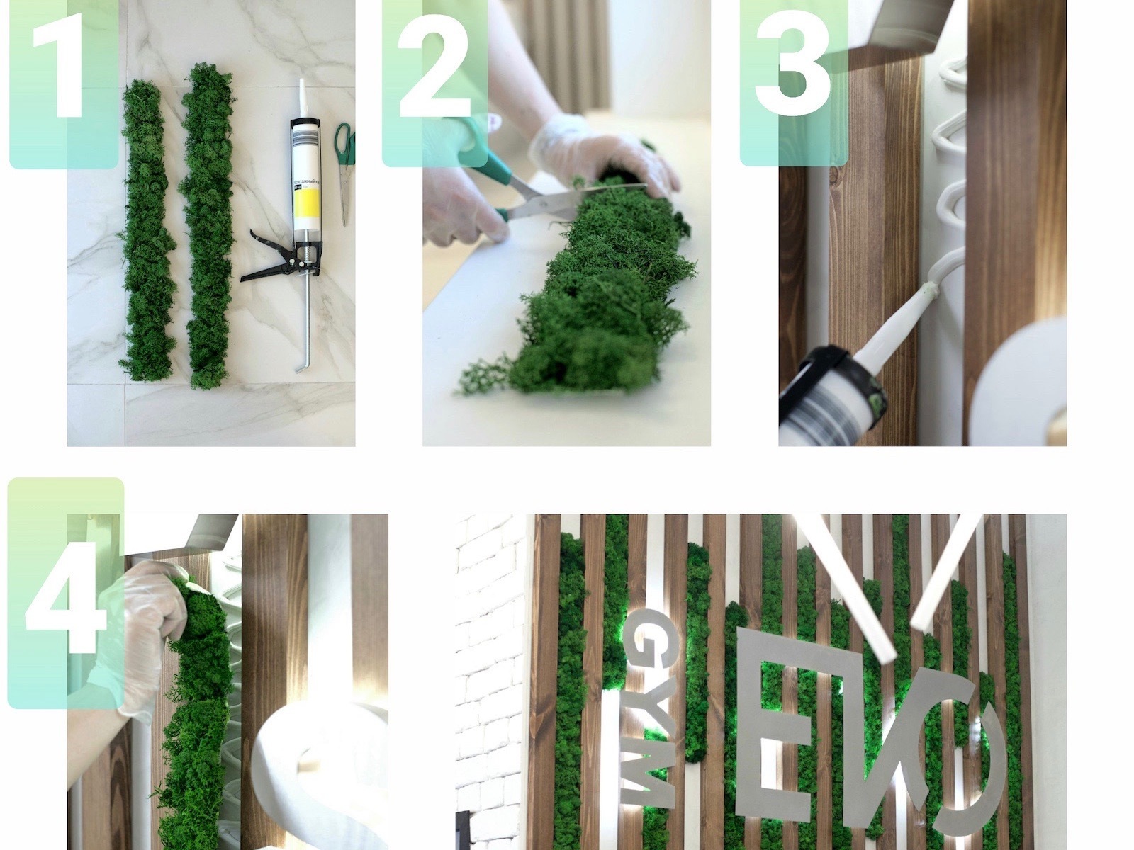 Мох стабилизированный на скотче для декора стен 3х50см / декор для дома