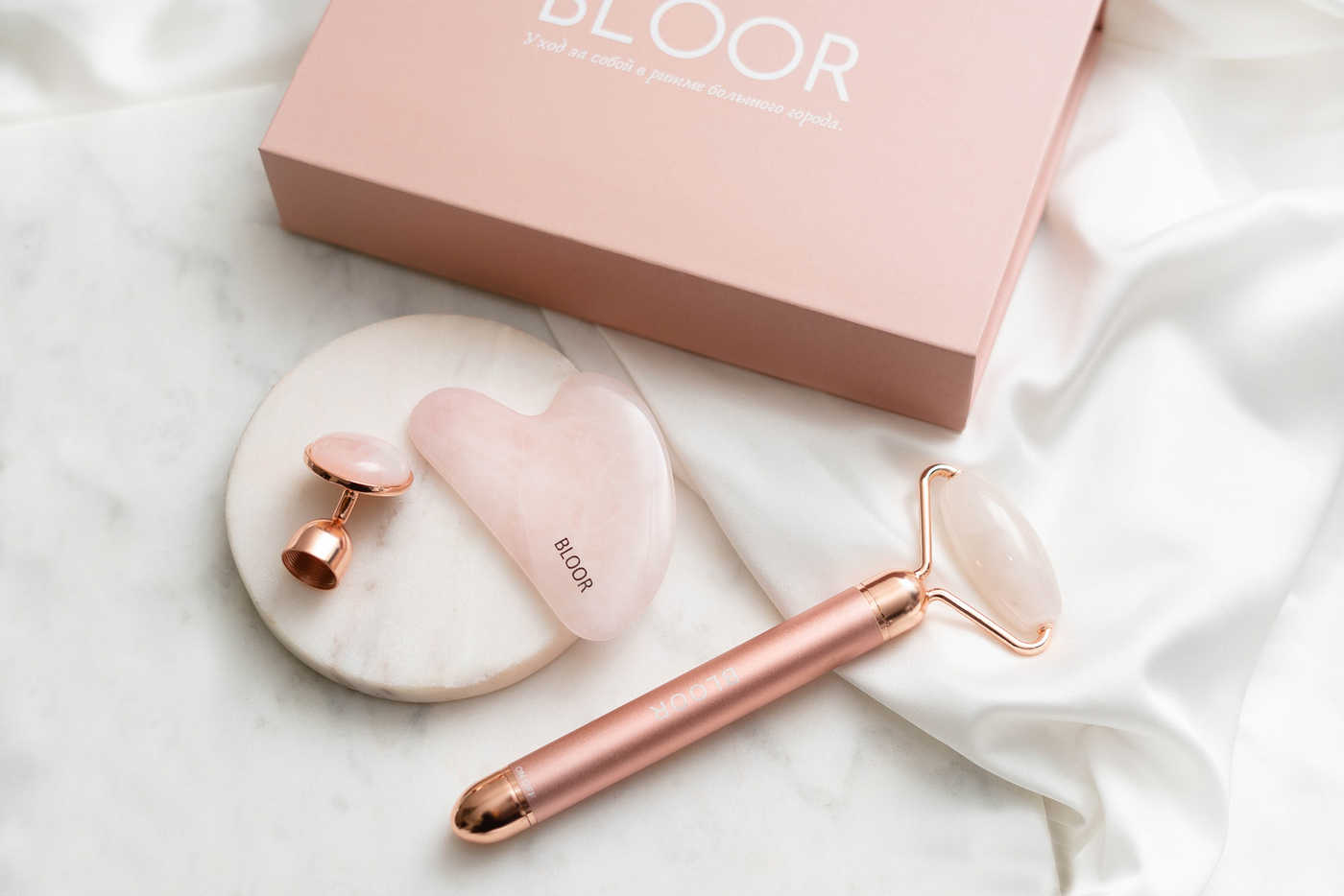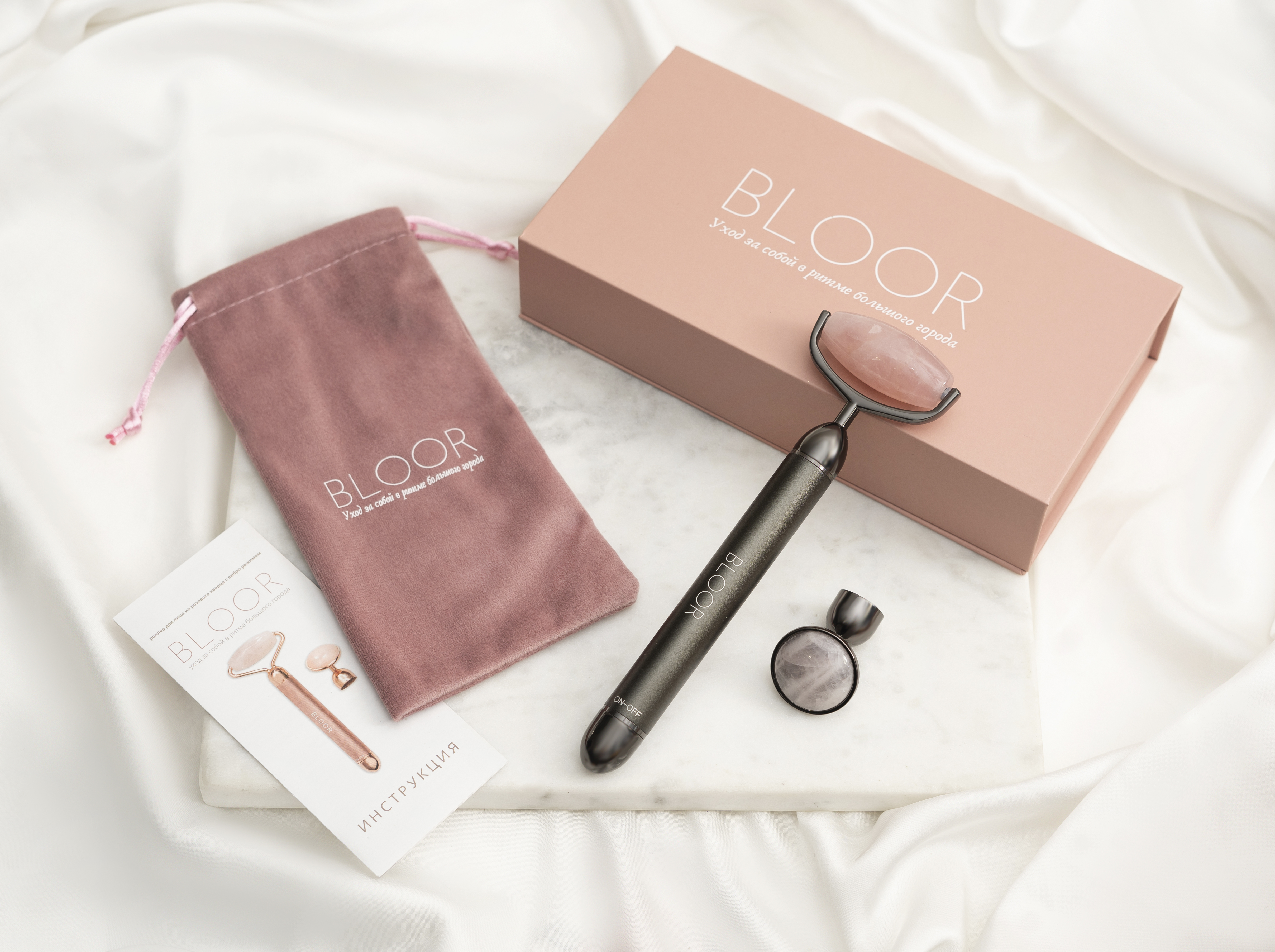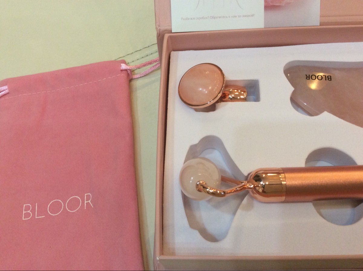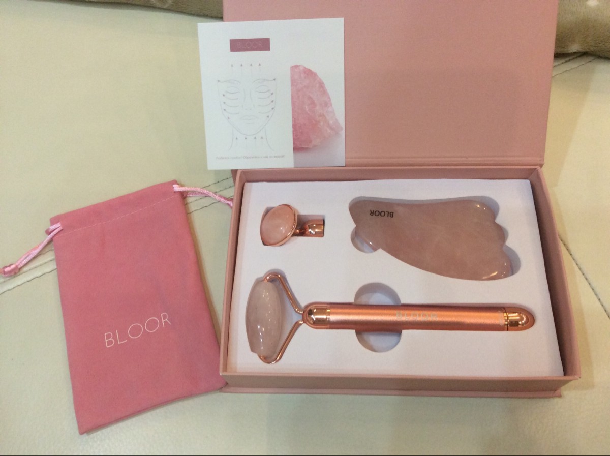 Кварцевый роллер для массажа гуаша с вибрацией/Массажер для лица роликовый BLOOR