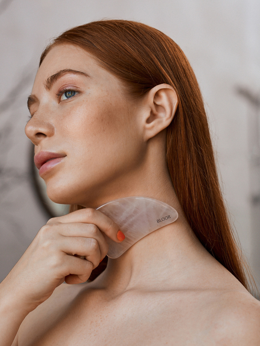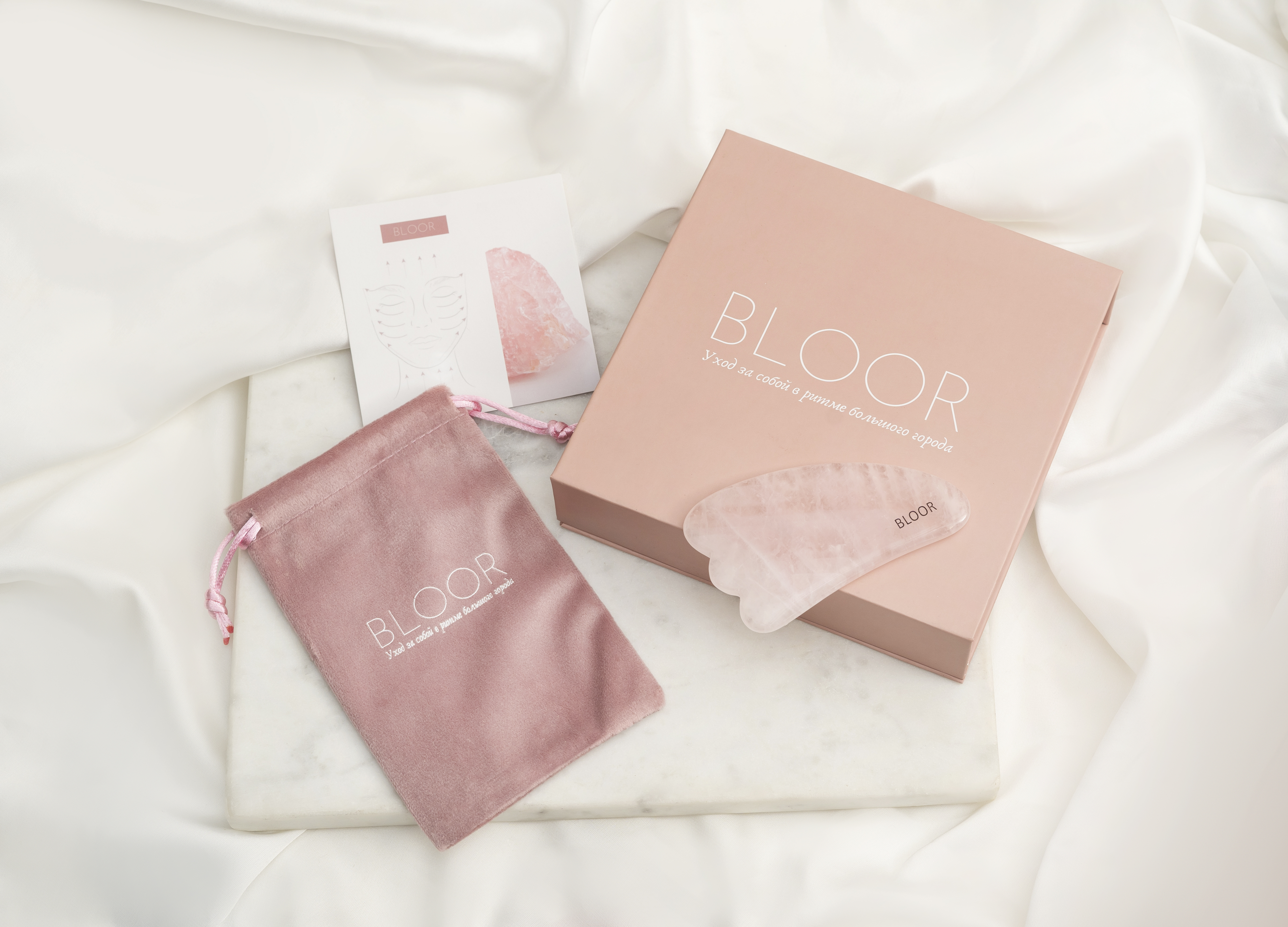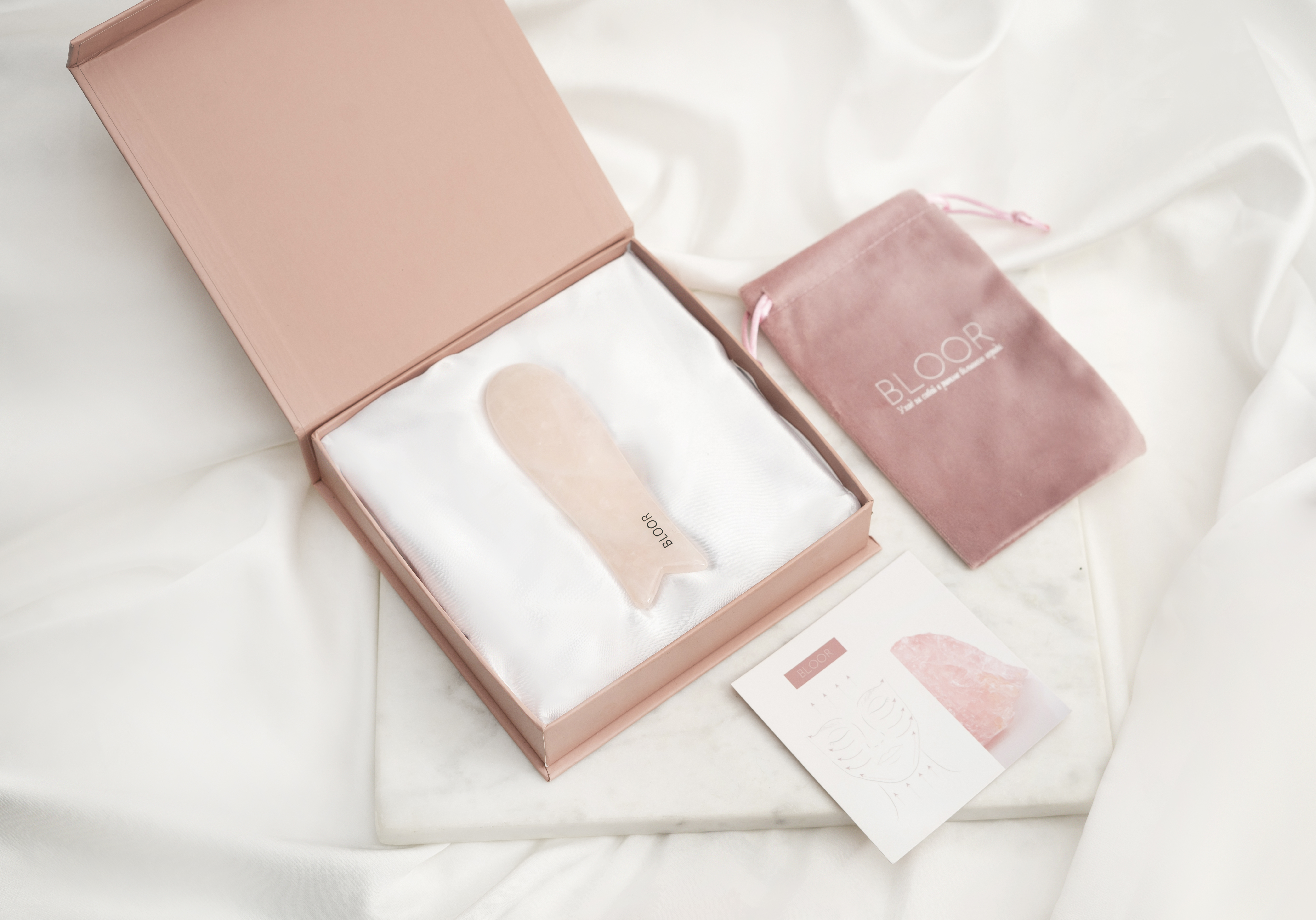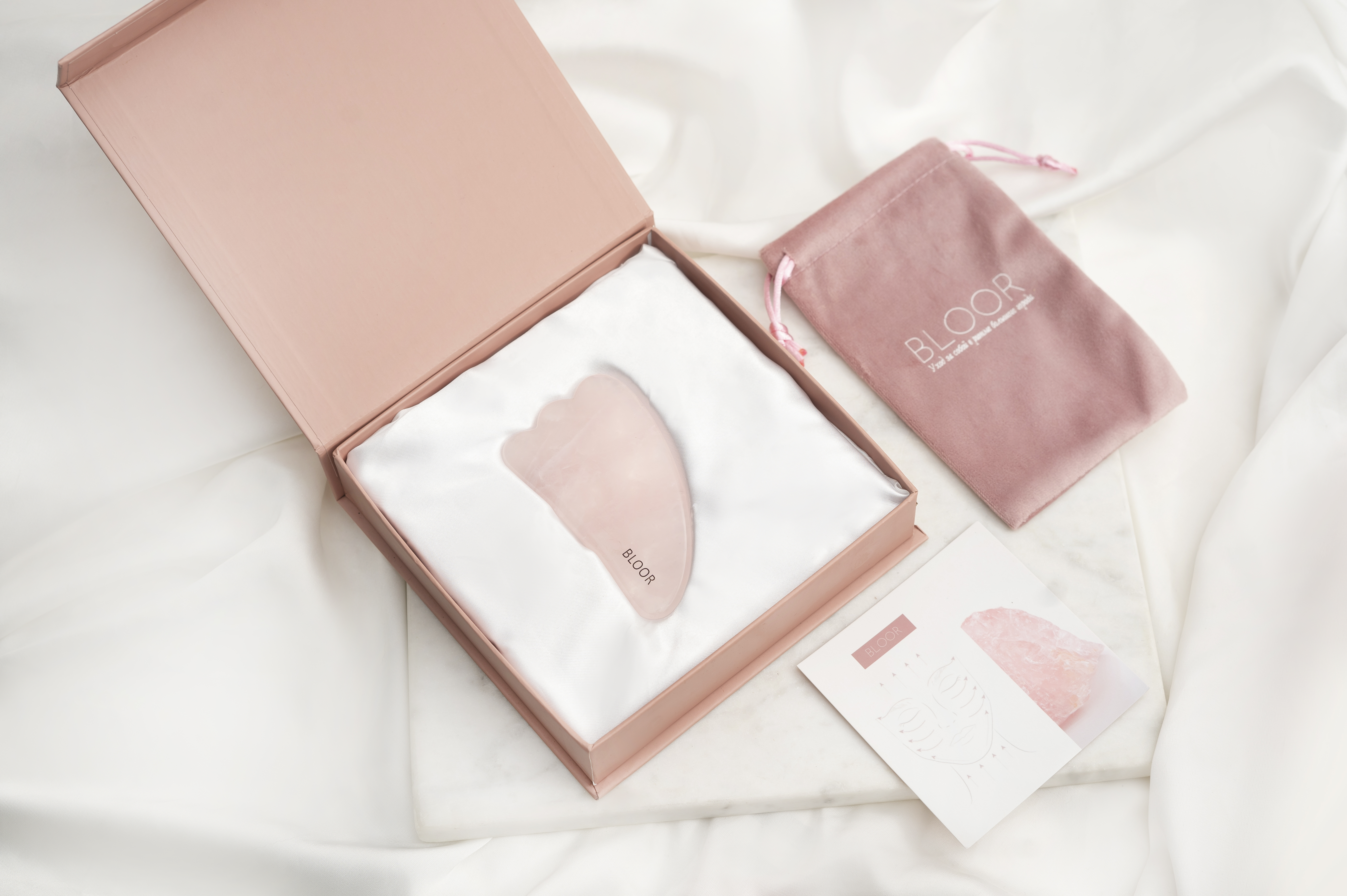 Скребок гуаша СЕРДЦЕ из цельного куска розового кварца/полудрагоценный камень BLOOR
