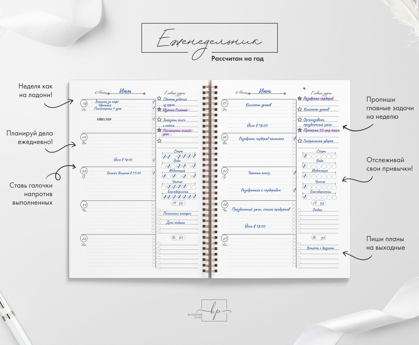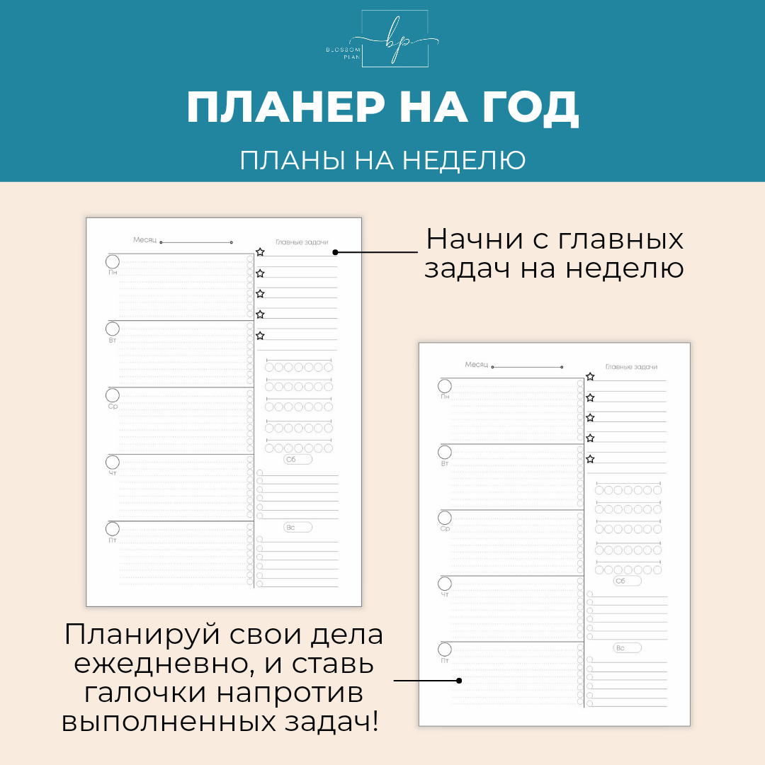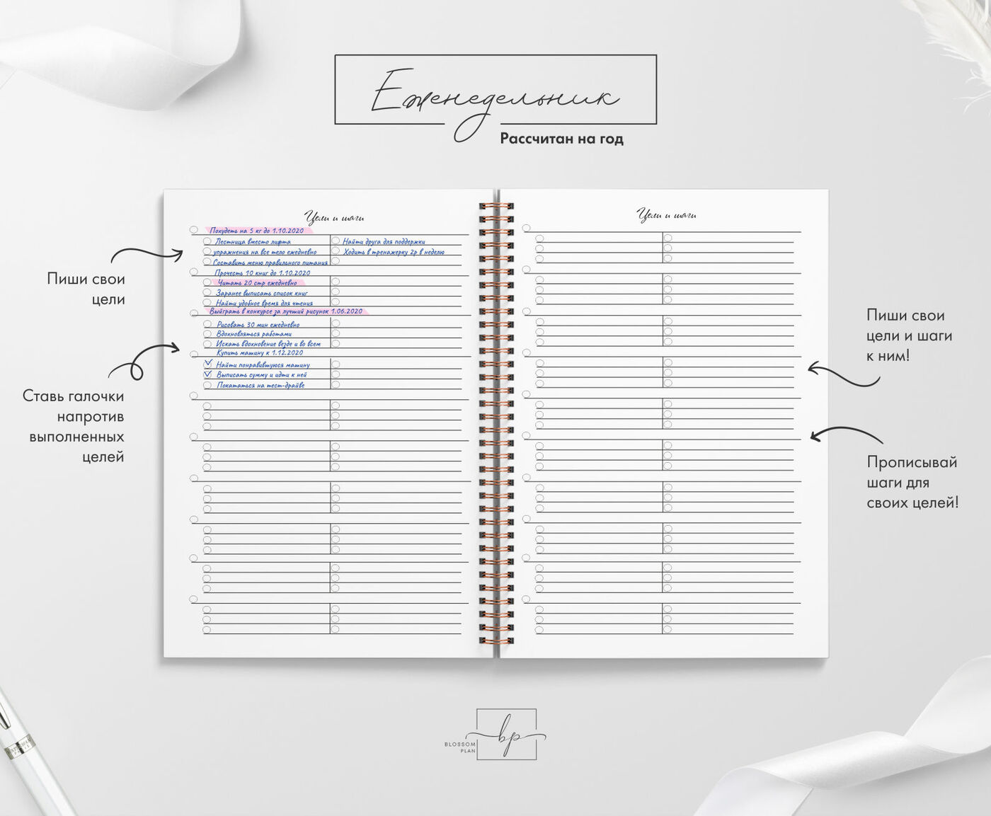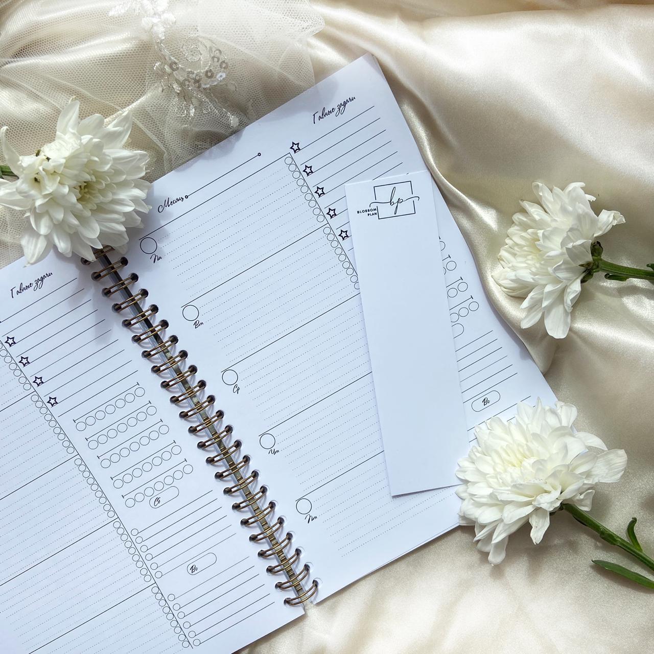 Авторский планер-блокнот еженедельник BlossomPlan "С надписями". Недатированный, А5, 122 страницы