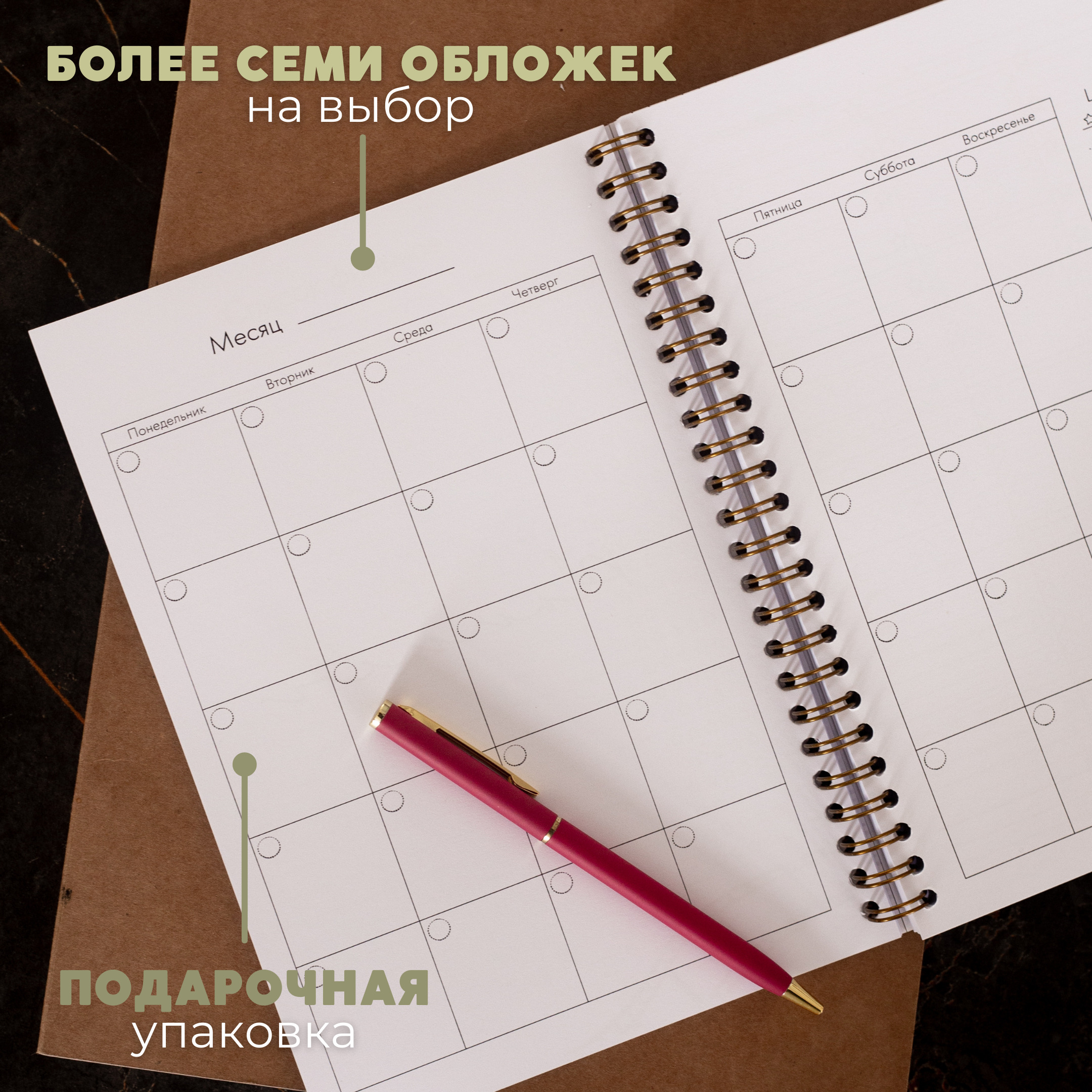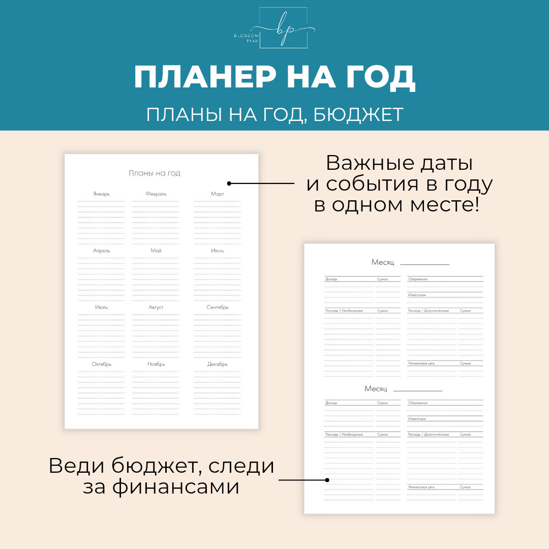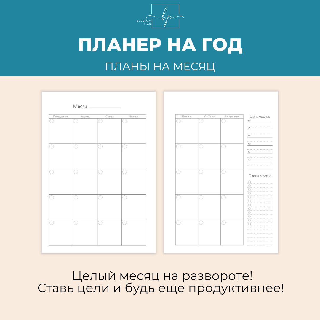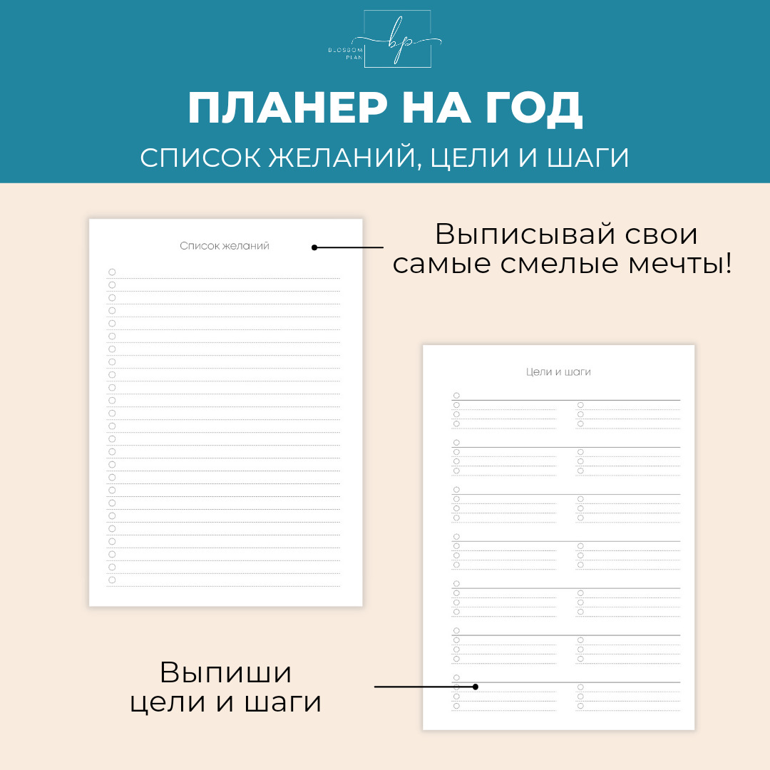 Авторский планер-блокнот еженедельник BlossomPlan "С надписями". Недатированный, А5, 122 страницы