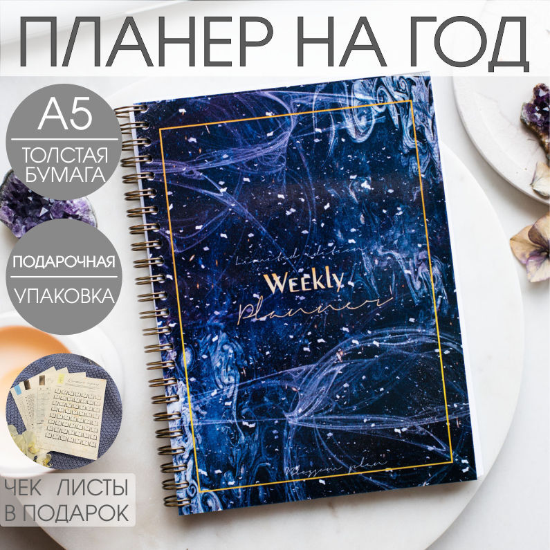 Планер блокнот еженедельник на год BlossomPlan "Космос". Недатированный, А5, 122 страницы