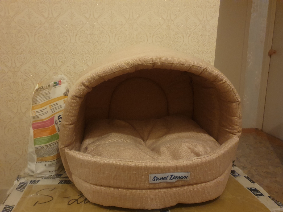 Домик - Эстрада для собак и кошек СЛАДКИЙ СОН Рогожка коричневая №1, 41х36х30см