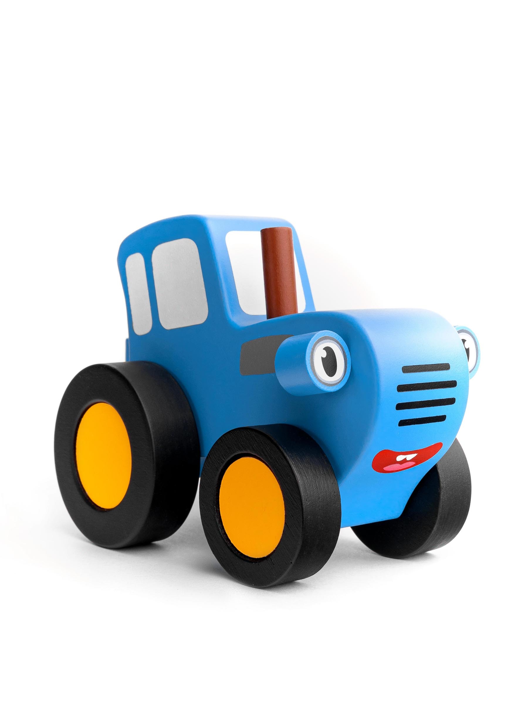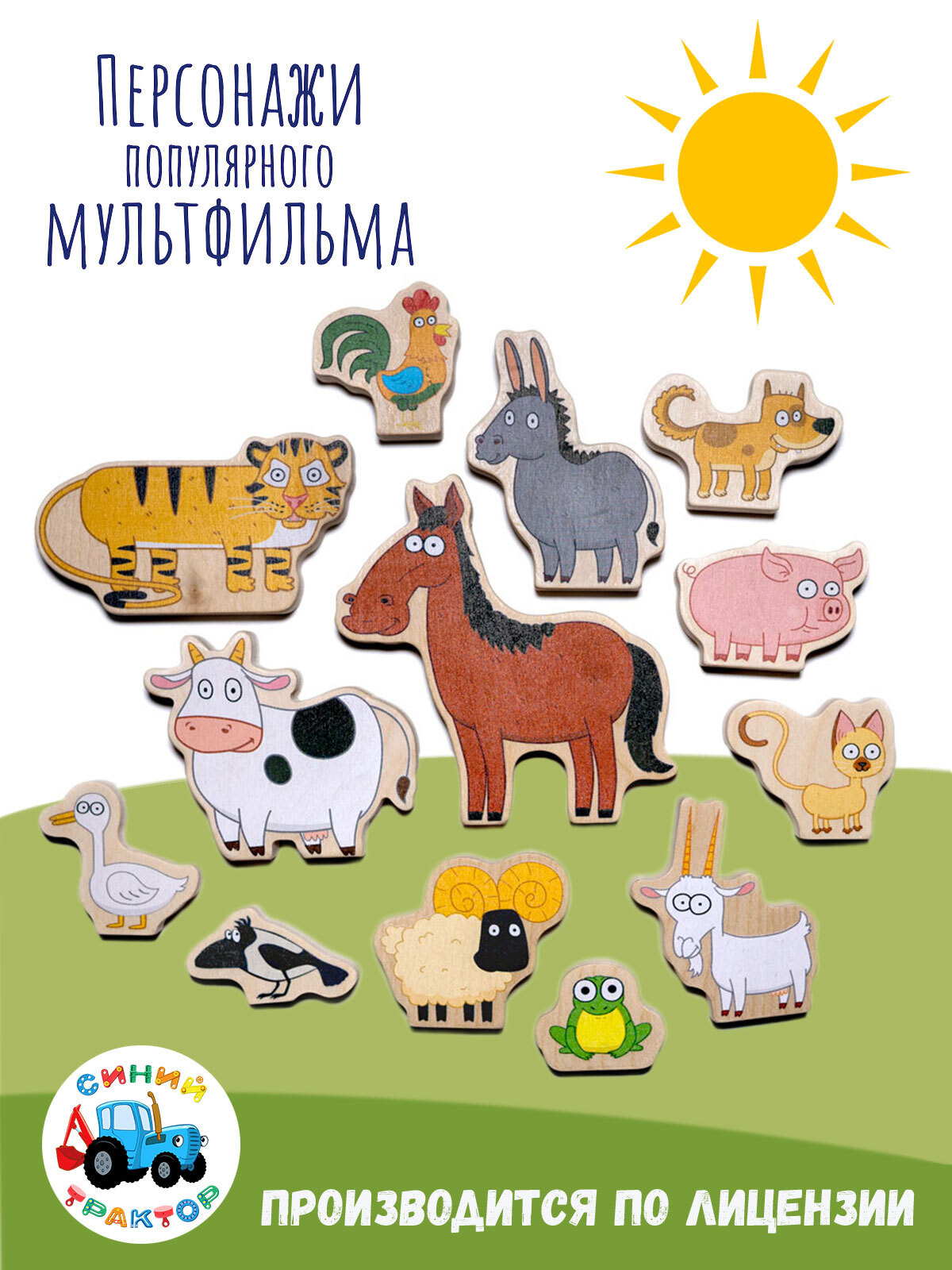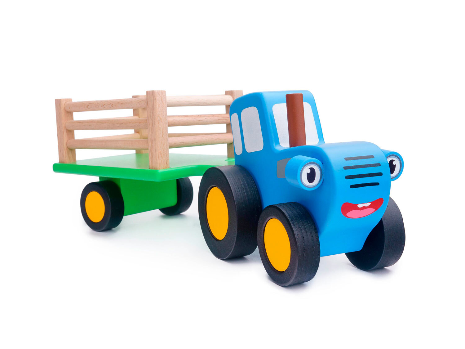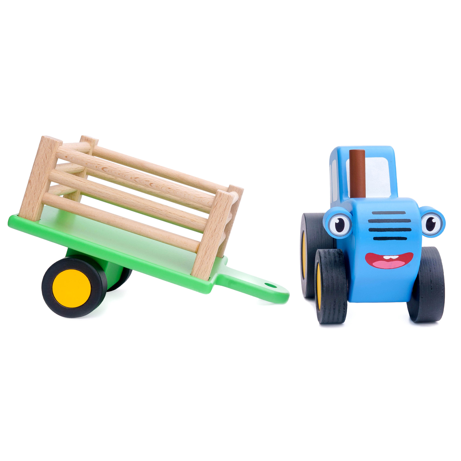 Игровой набор Bochart Синий Трактор Гоша 11 см с прицепом и набор животных (фанера) Едет трактор