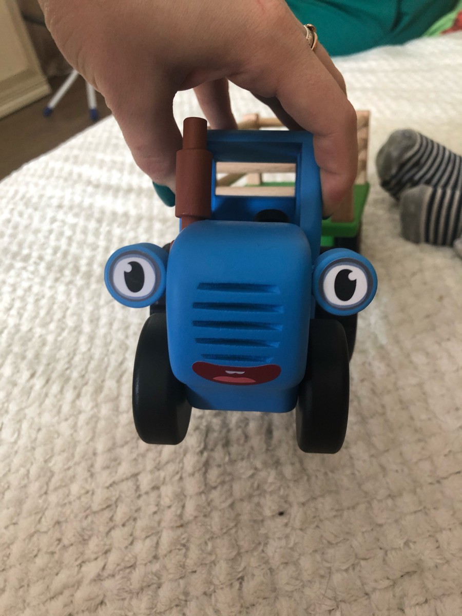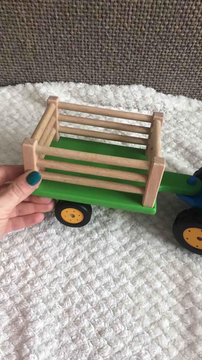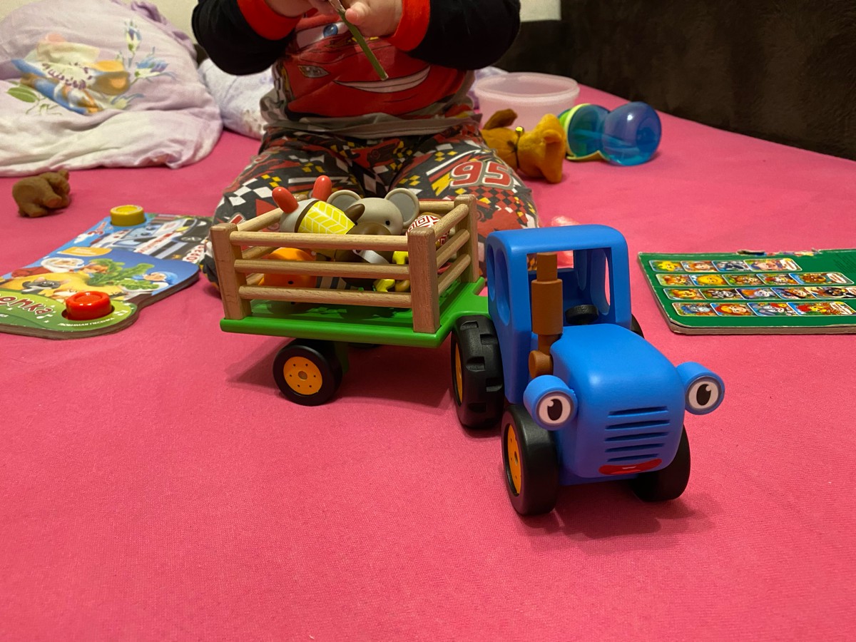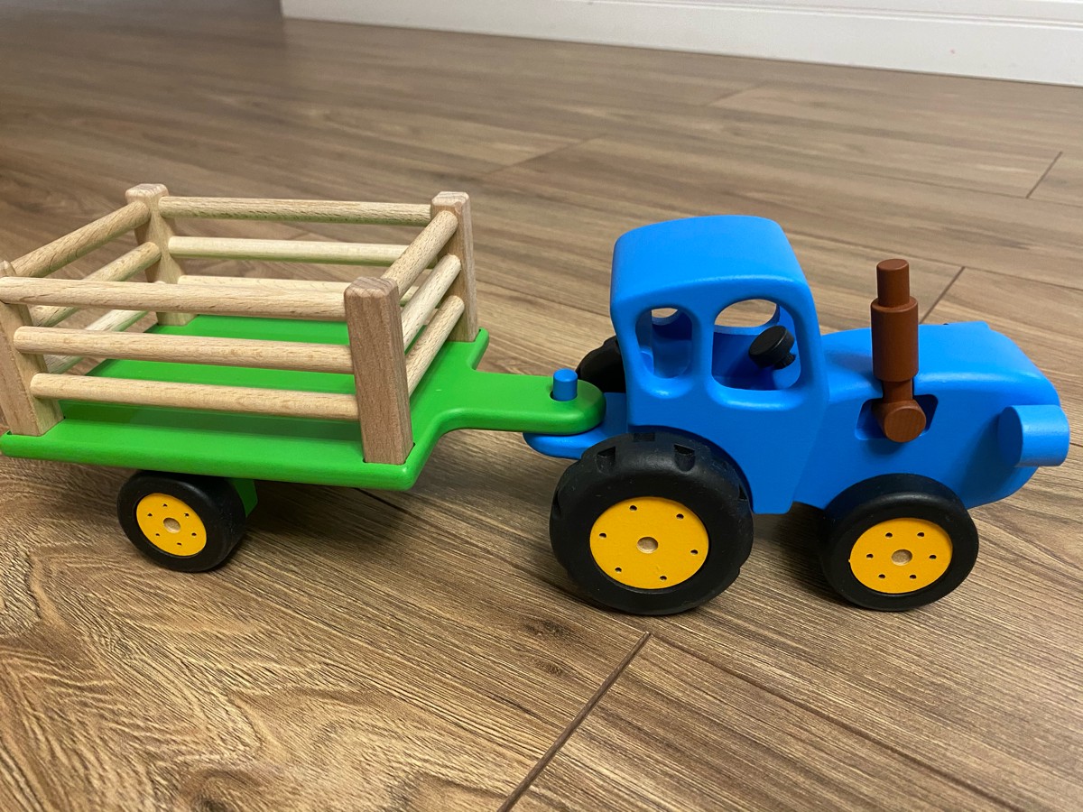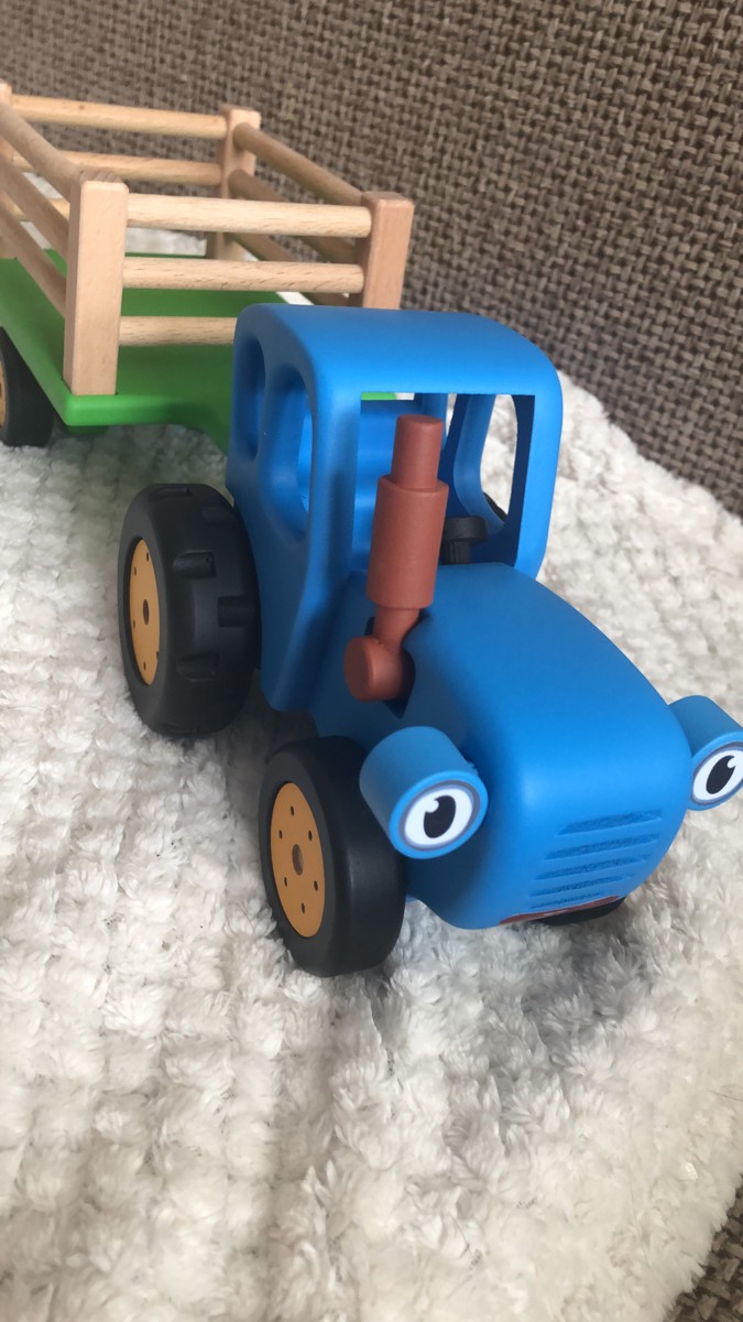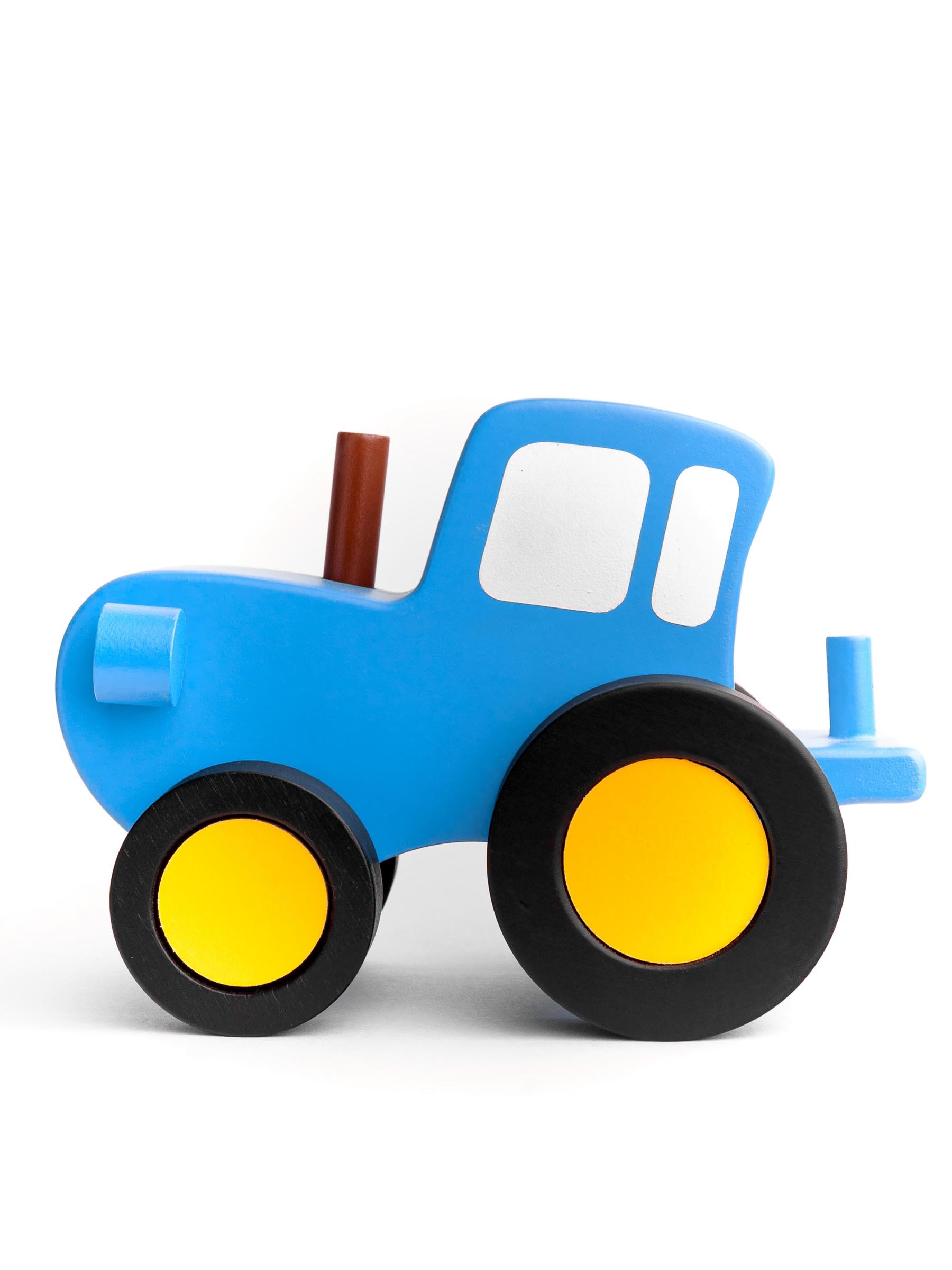 Игровой набор Bochart Синий Трактор Гоша 11 см с прицепом и набор животных (фанера) Едет трактор