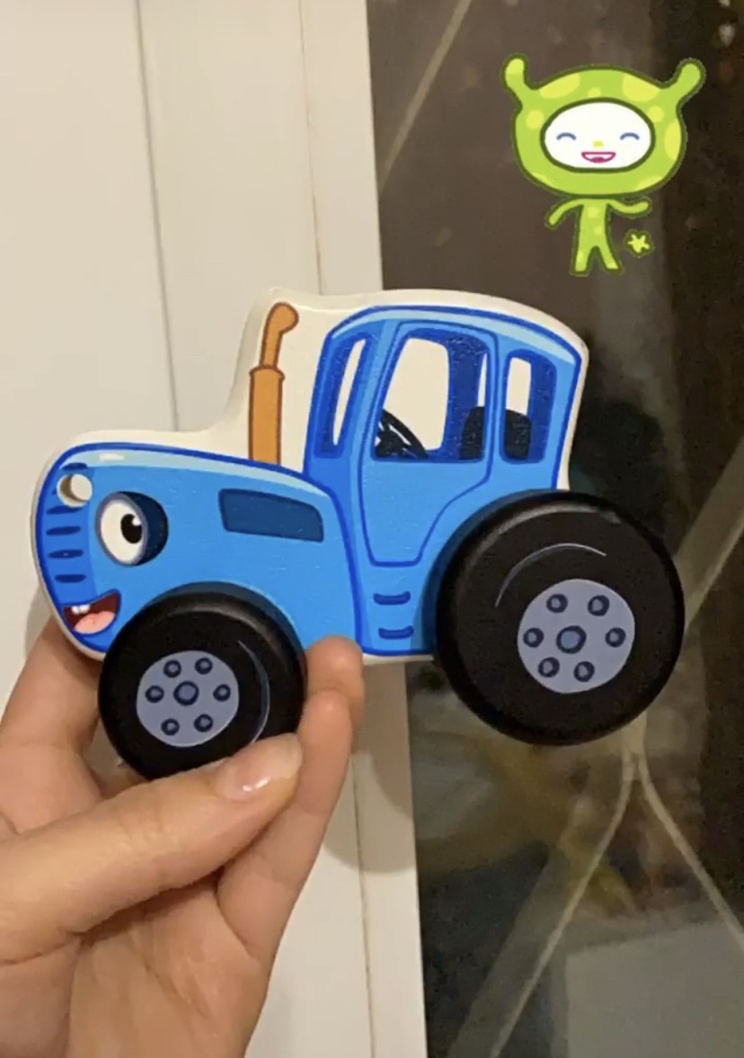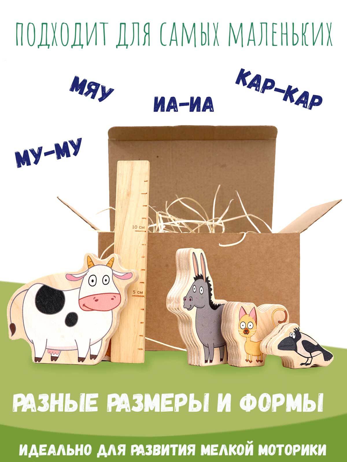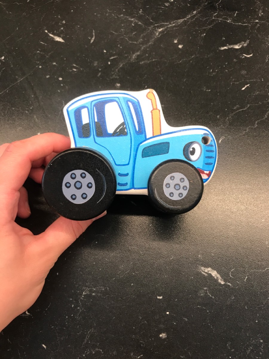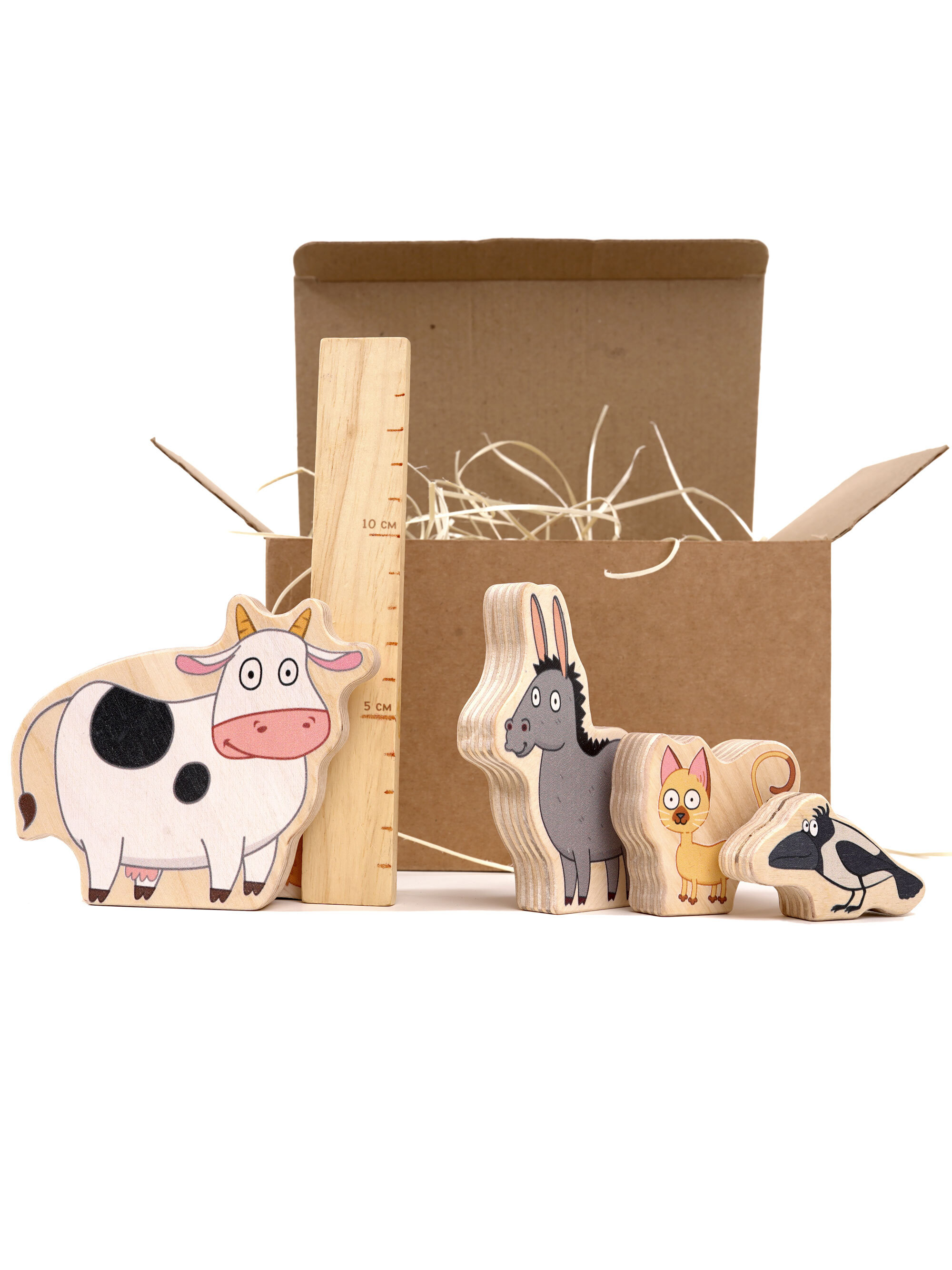 Игровой набор Bochart Синий Трактор Гоша 11 см с прицепом и набор животных (фанера) Едет трактор