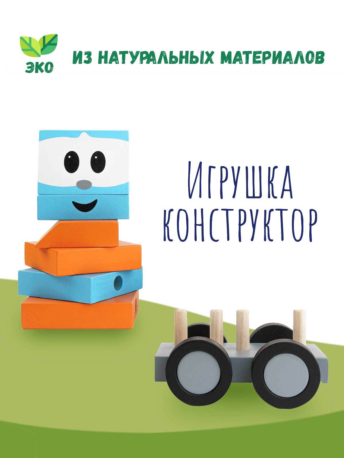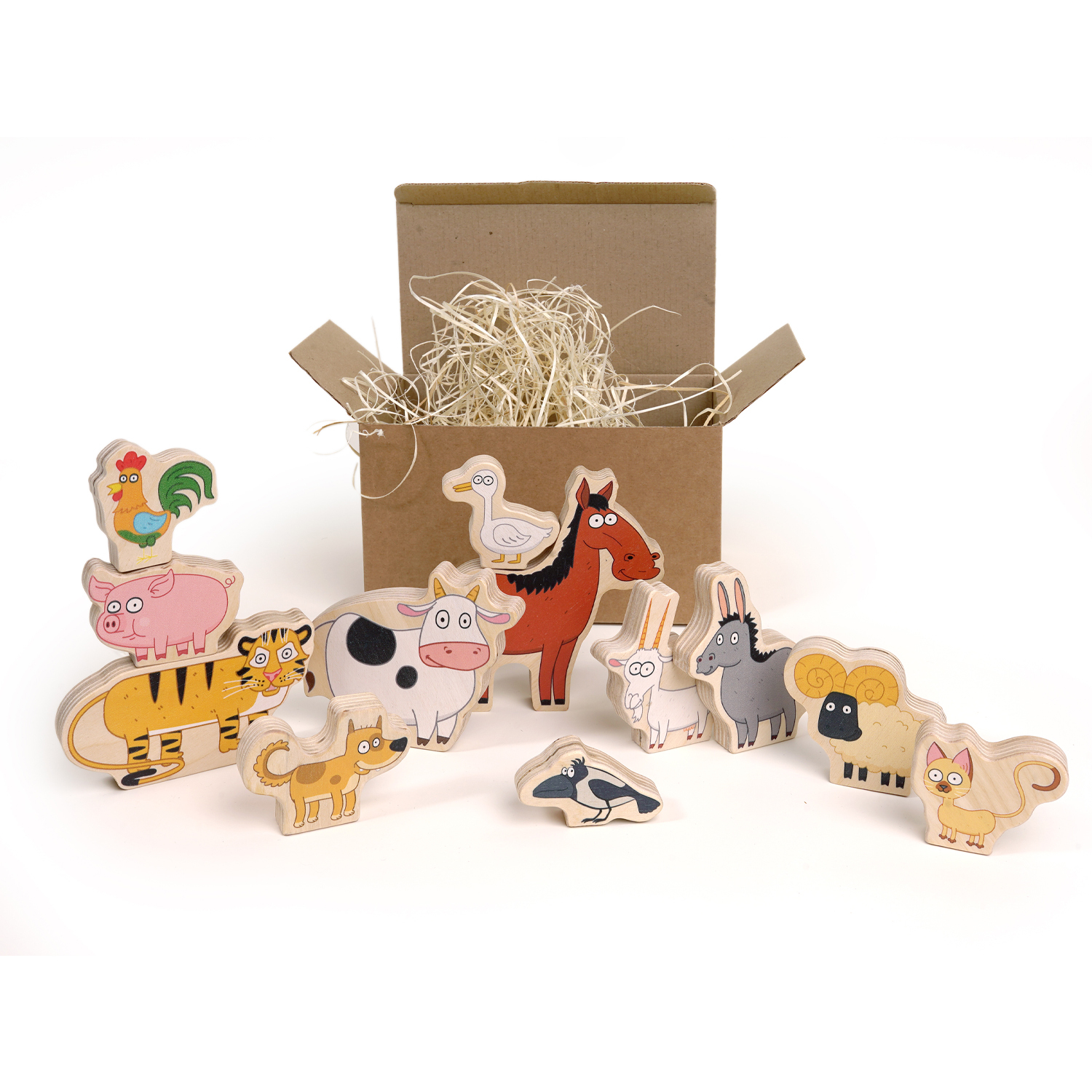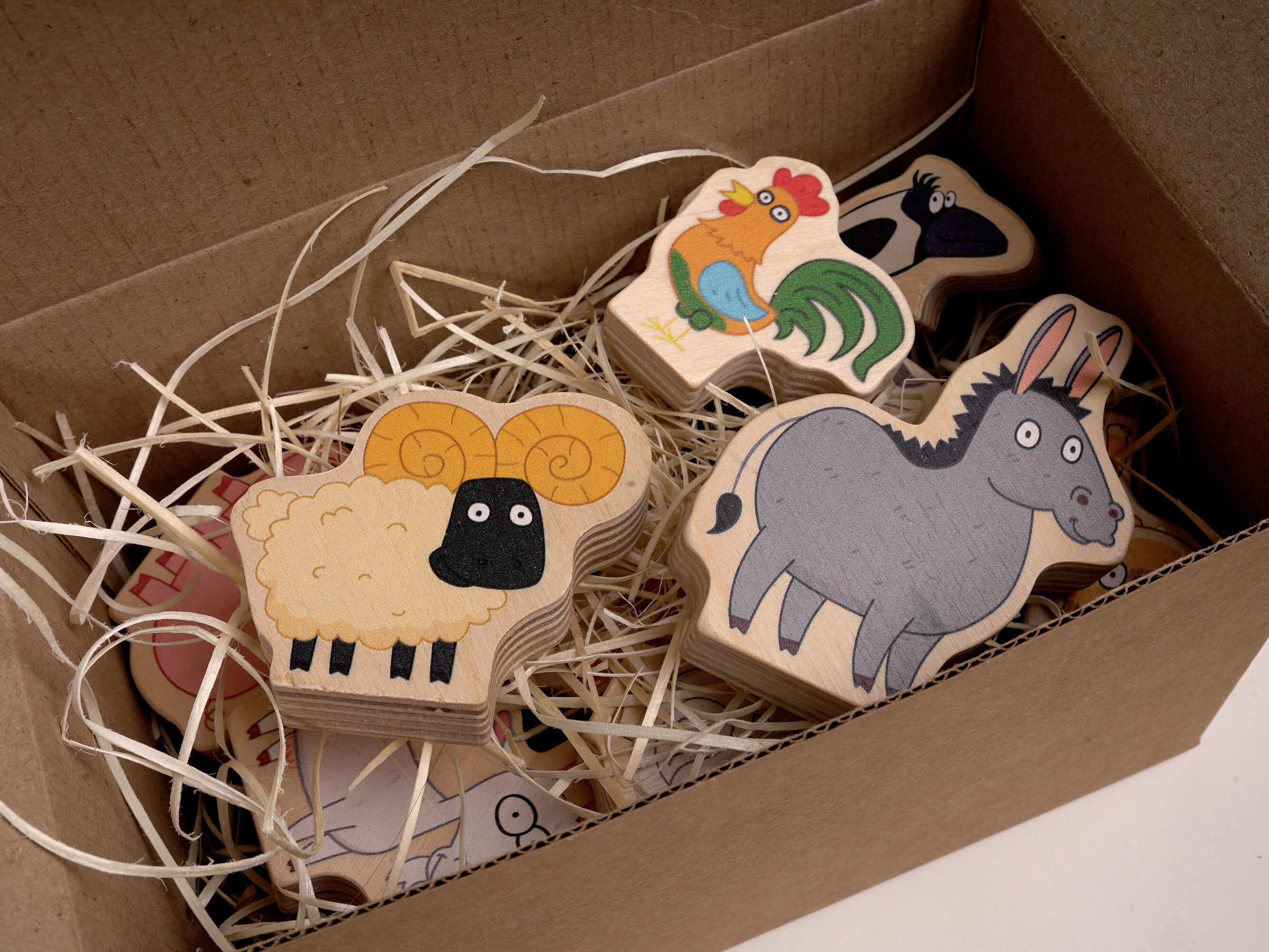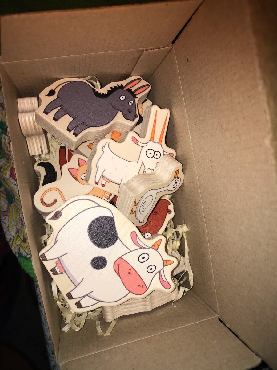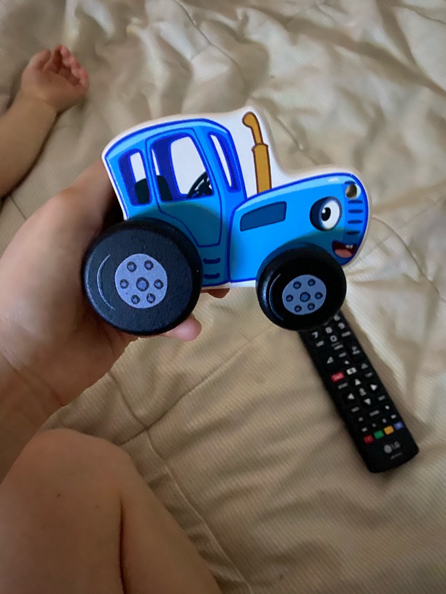 Игровой набор Bochart Синий Трактор Гоша 11 см с прицепом и набор животных (фанера) Едет трактор