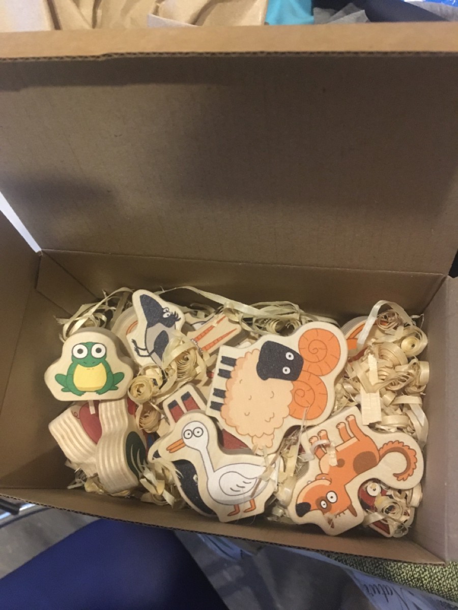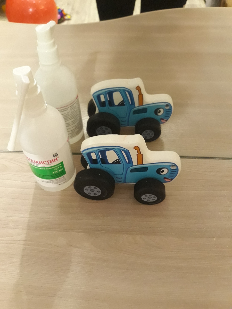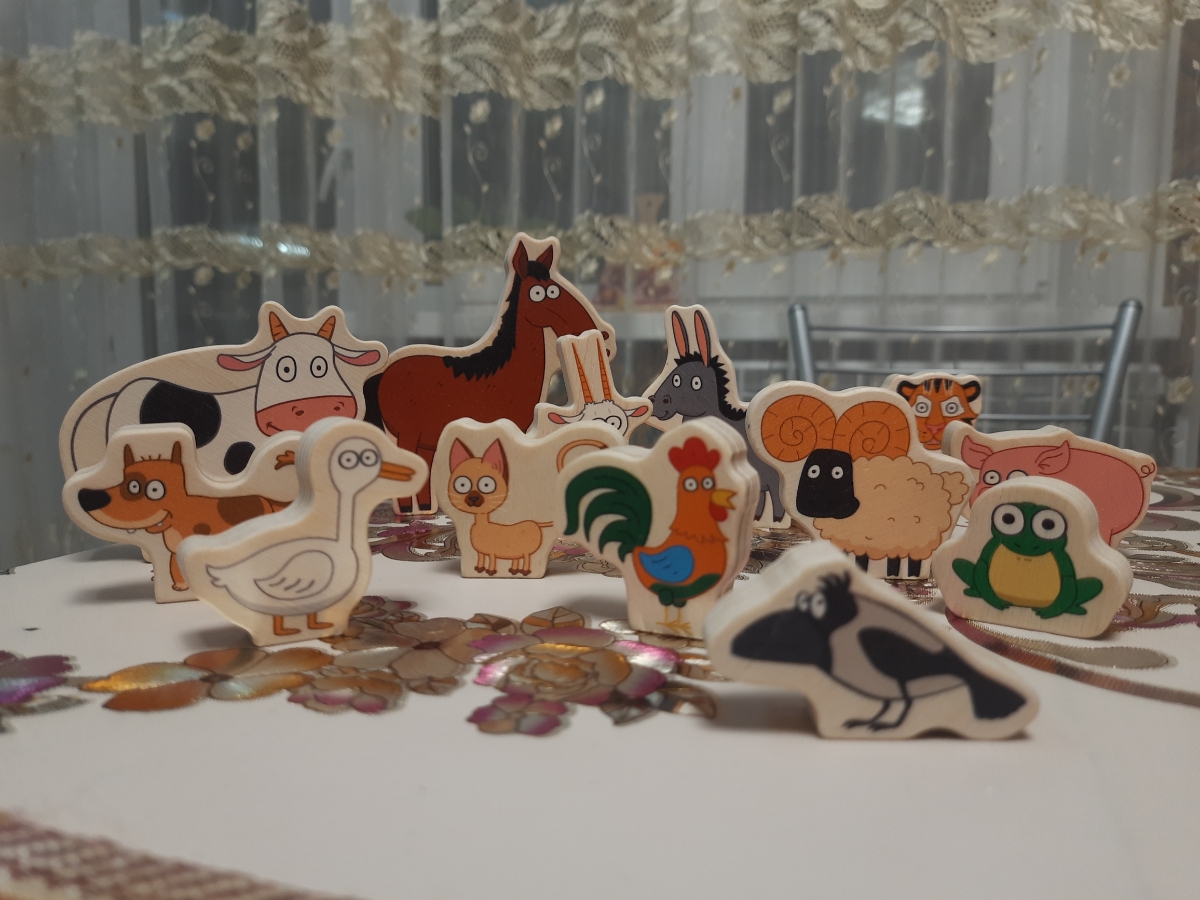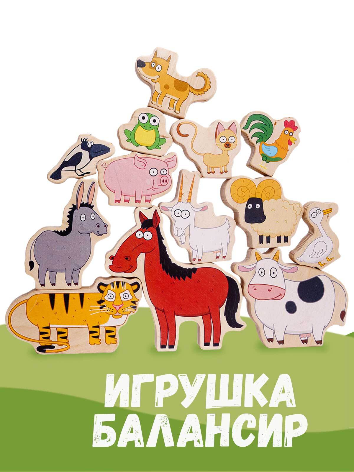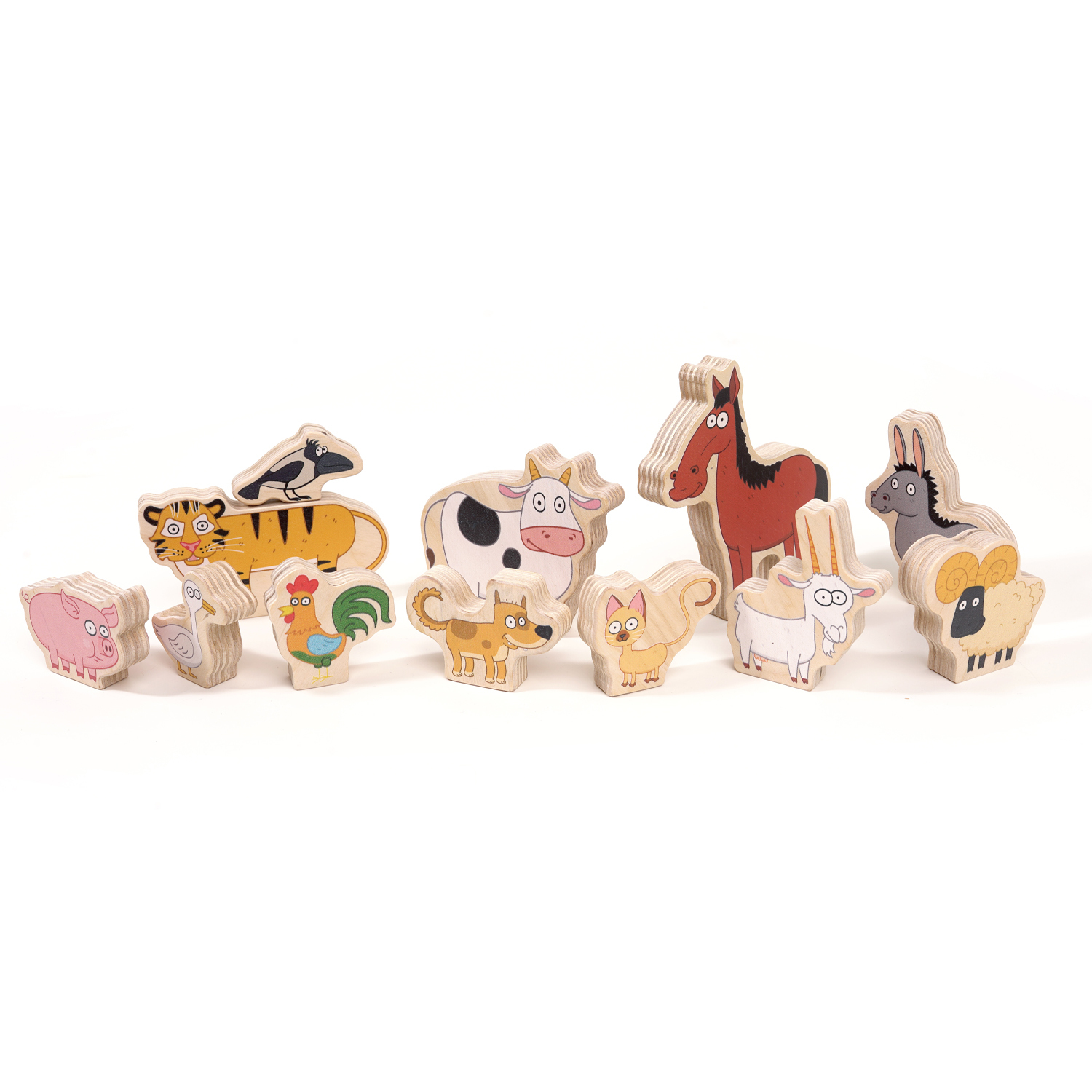 Игровой набор Bochart Синий Трактор Гоша 11 см с прицепом и набор животных (фанера) Едет трактор