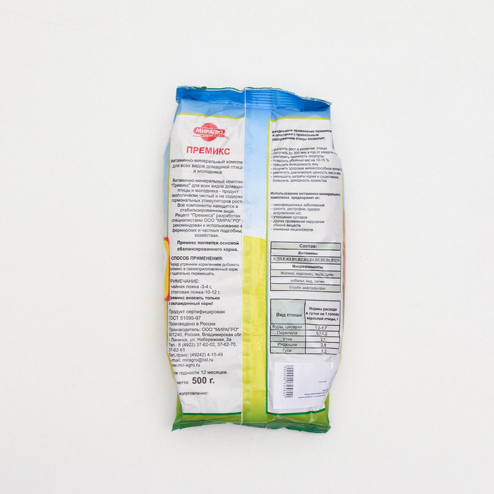 Премикс для домашней птицы йодированный Богатей 500гр. ГОСТ 51095-97