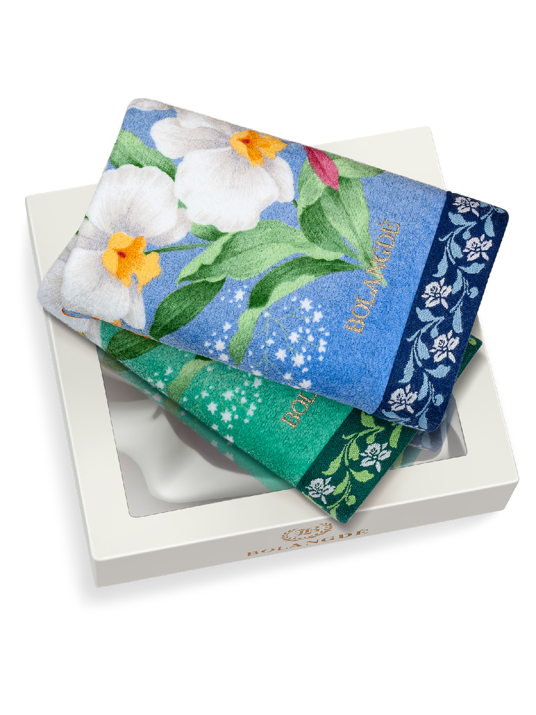 Набор полотенец для лица, рук или ног Bolangde Ирисы-4 Хлопок, Махровая ткань 50x90 см, 2 шт.