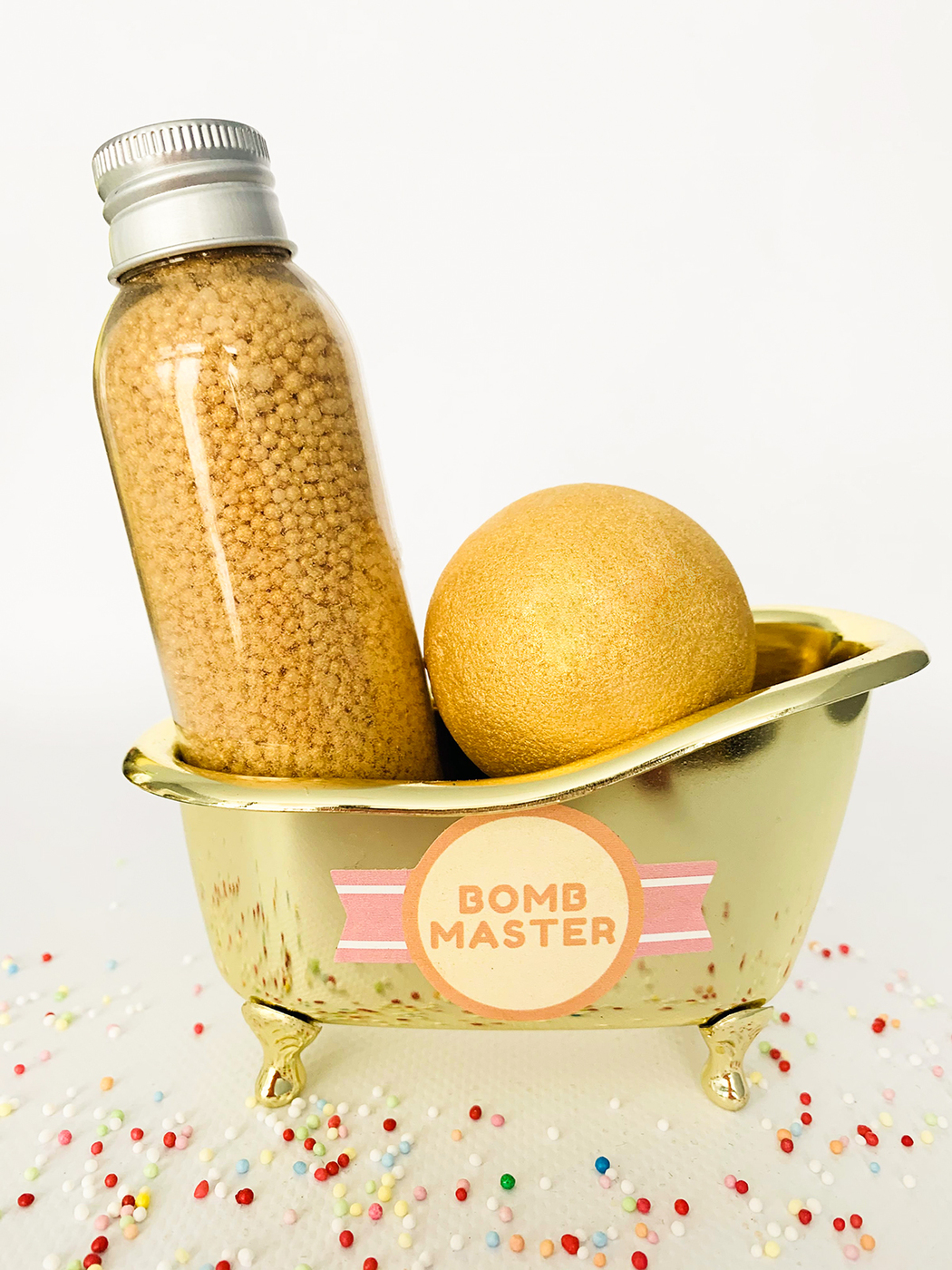 Bomb Master - Набор для принятия ванны с бомбочкой для ванн (бурлящий шар) и жемчугом-бисером, шарик + флакон