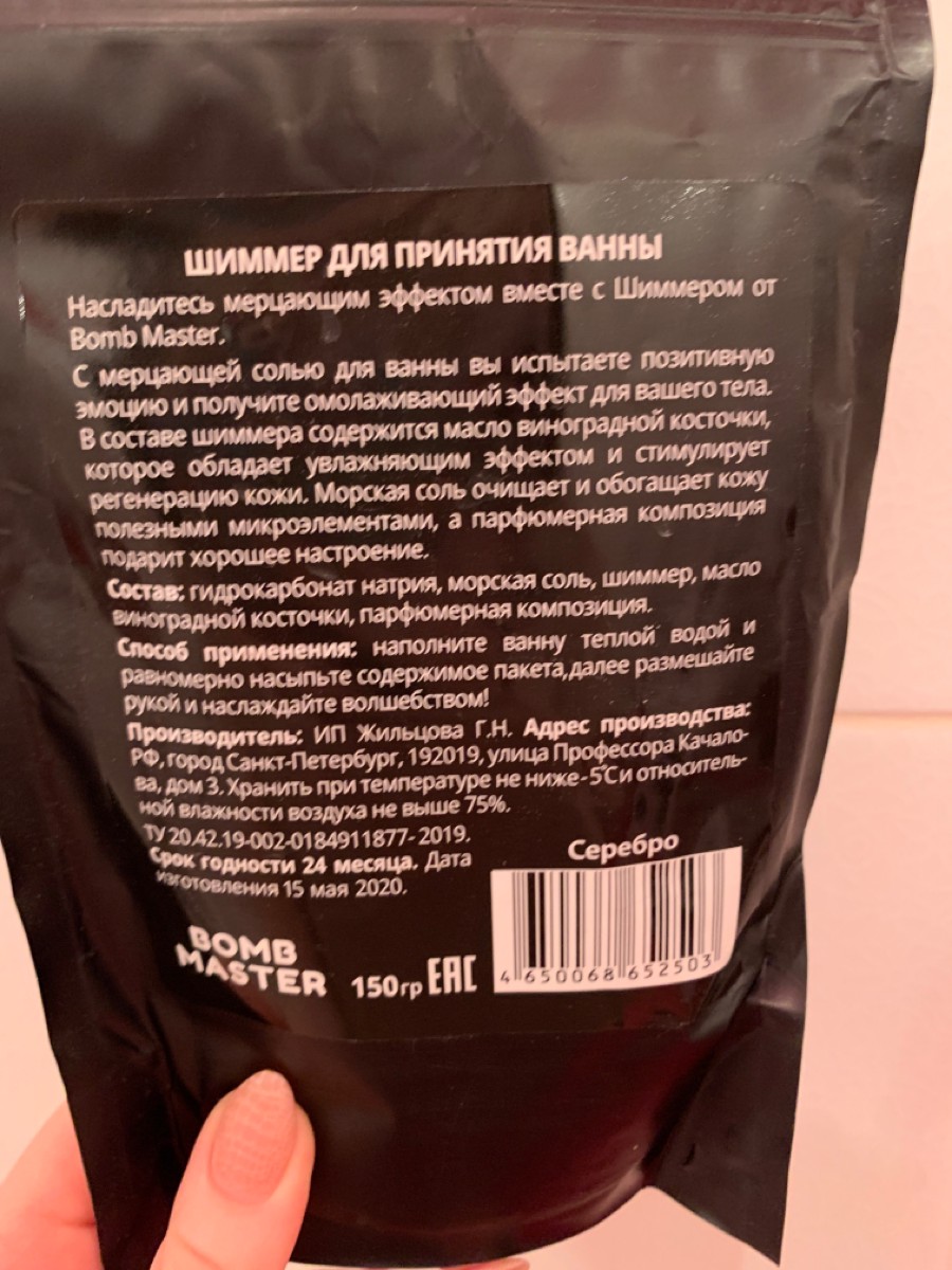 Bomb Master шиммер-бомбочка. Мерцающая соль (пудра) для ванн, 150 гр.