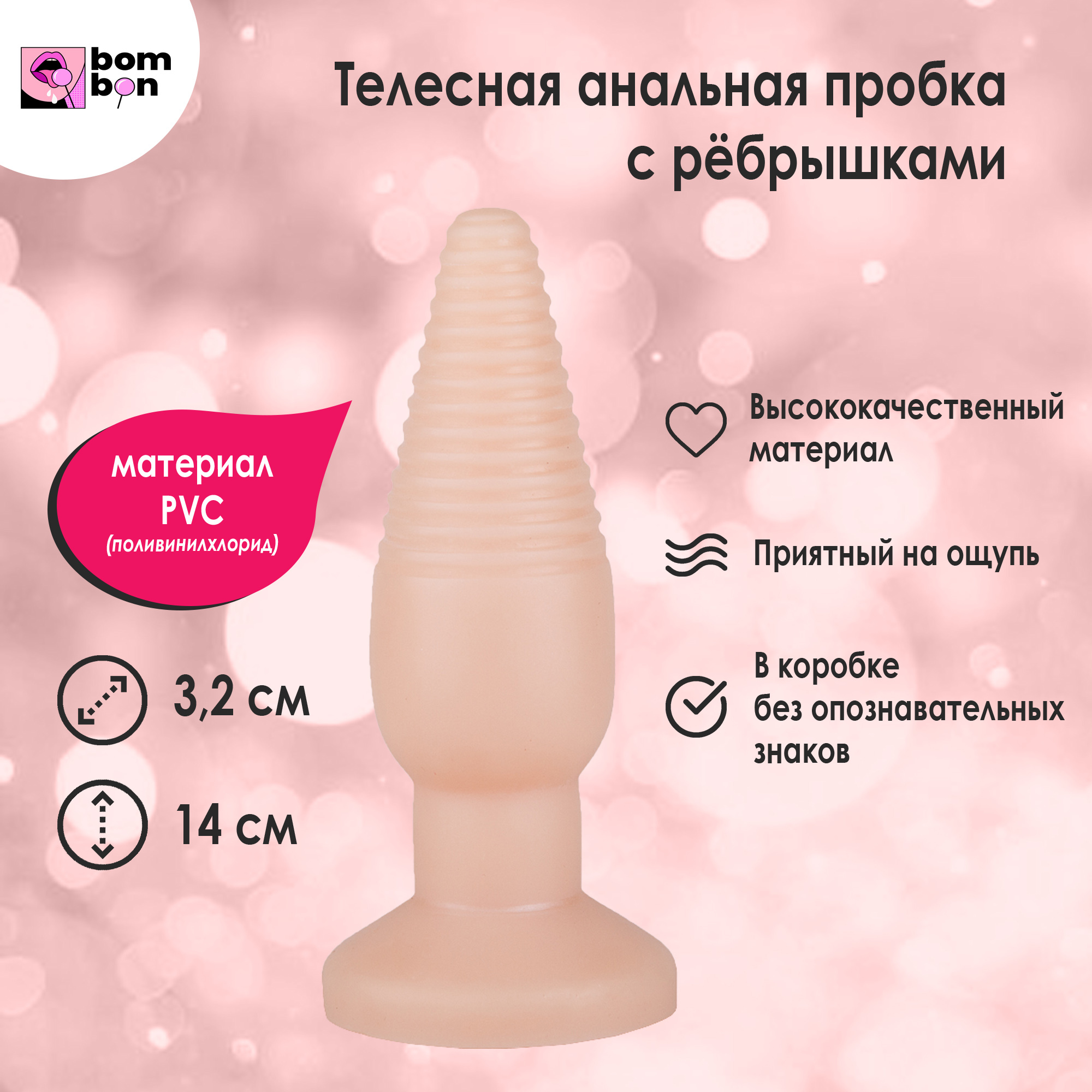 Анальная пробка Bombon с ребрышками, 18+, 32 мм
