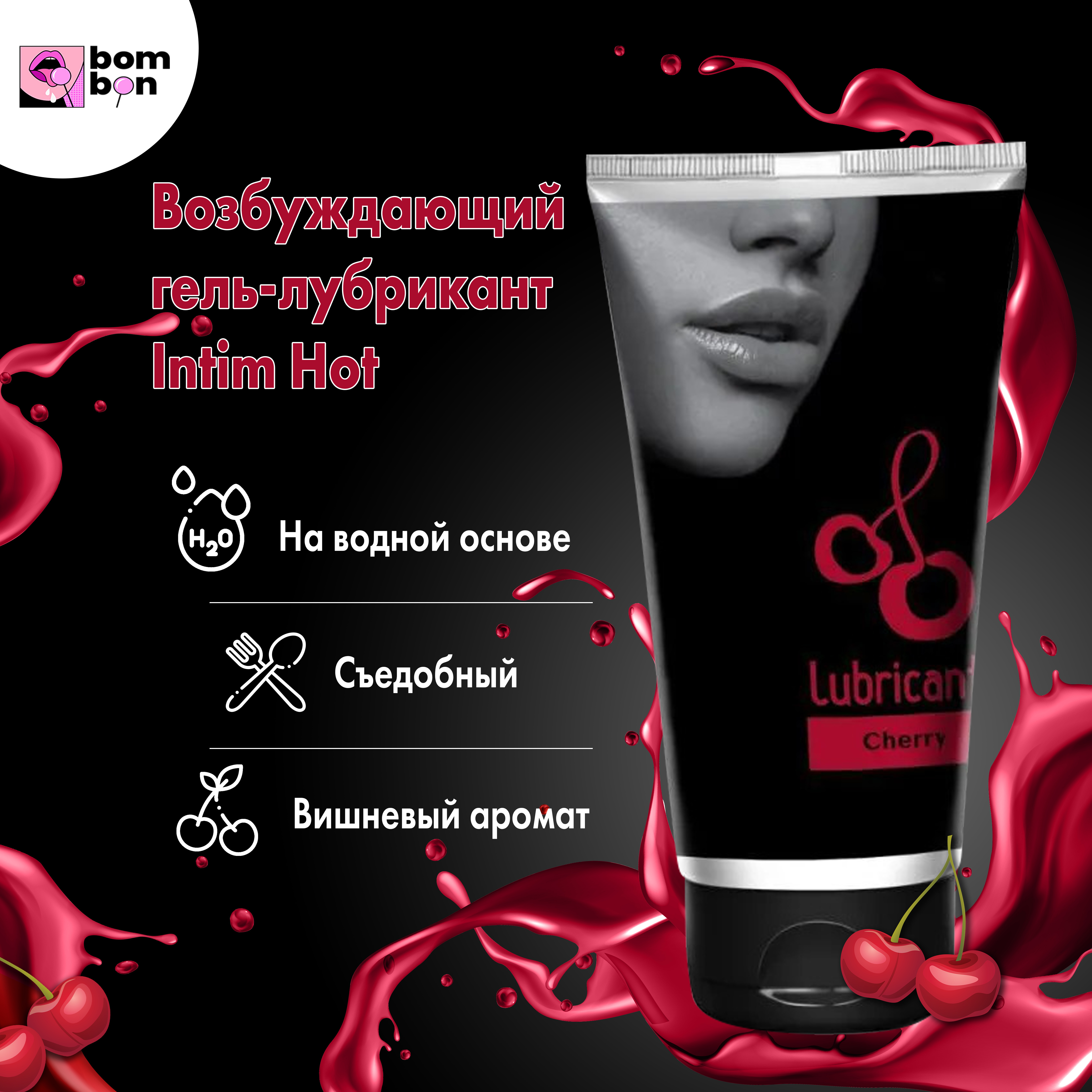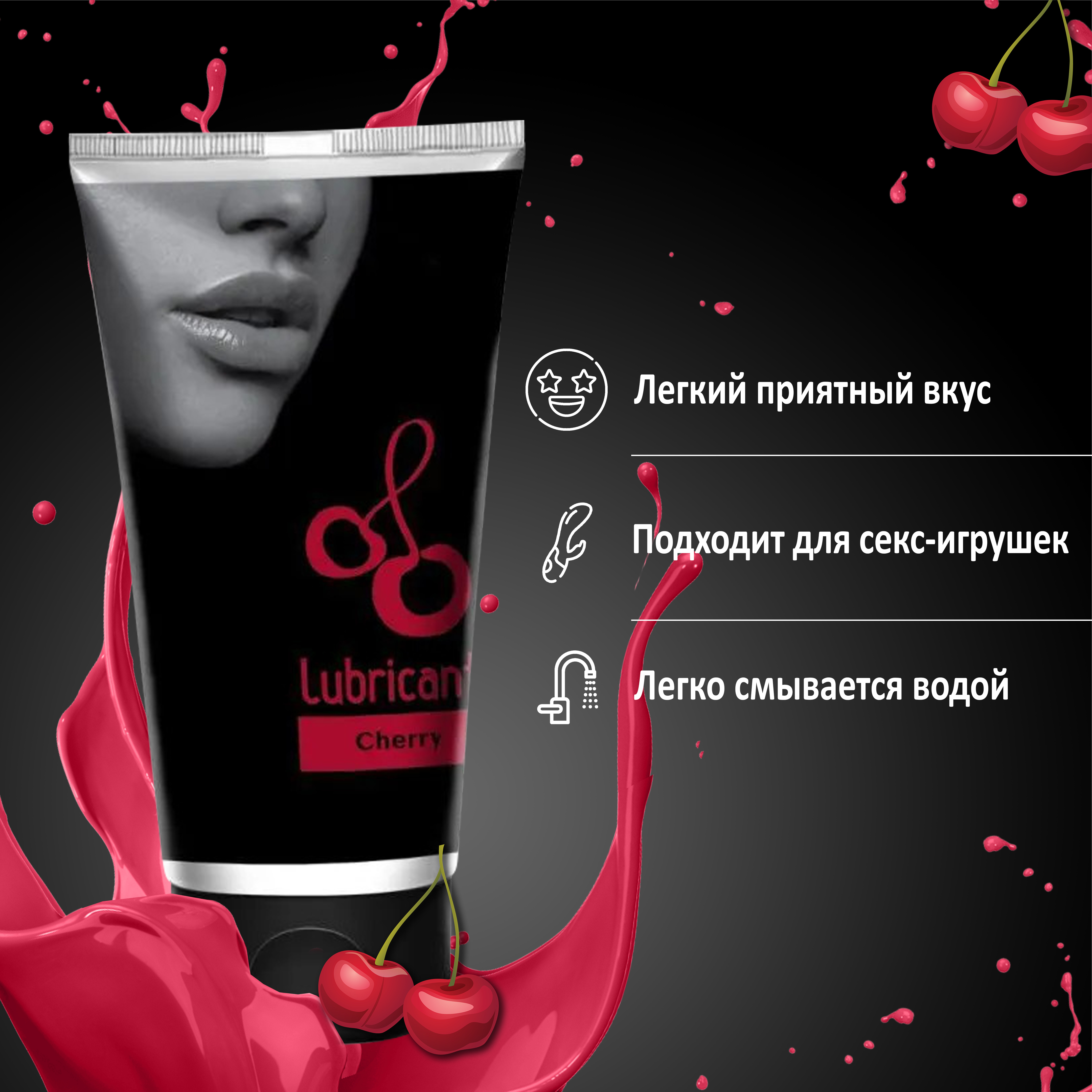 Съедобный лубрикант на водной основе с ароматом вишни- 50 мл.