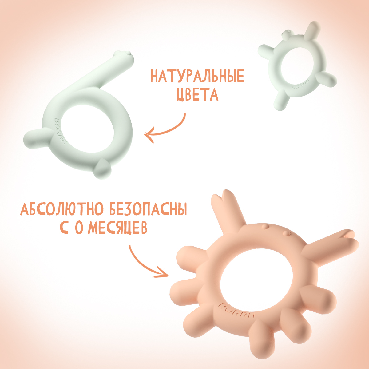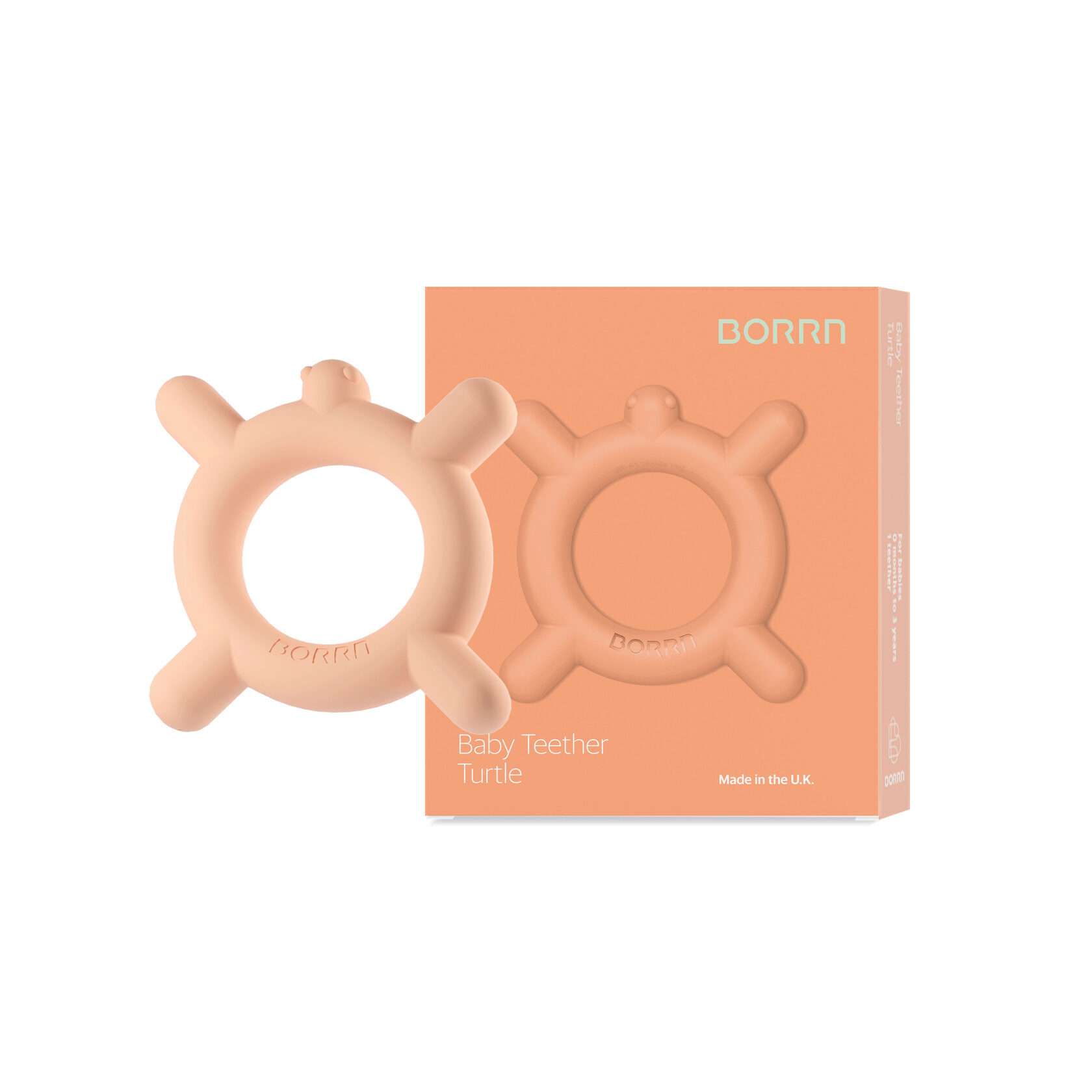 Детский прорезыватель для зубов BORRN из мягкого силикона, TURTLE (оранжевый)