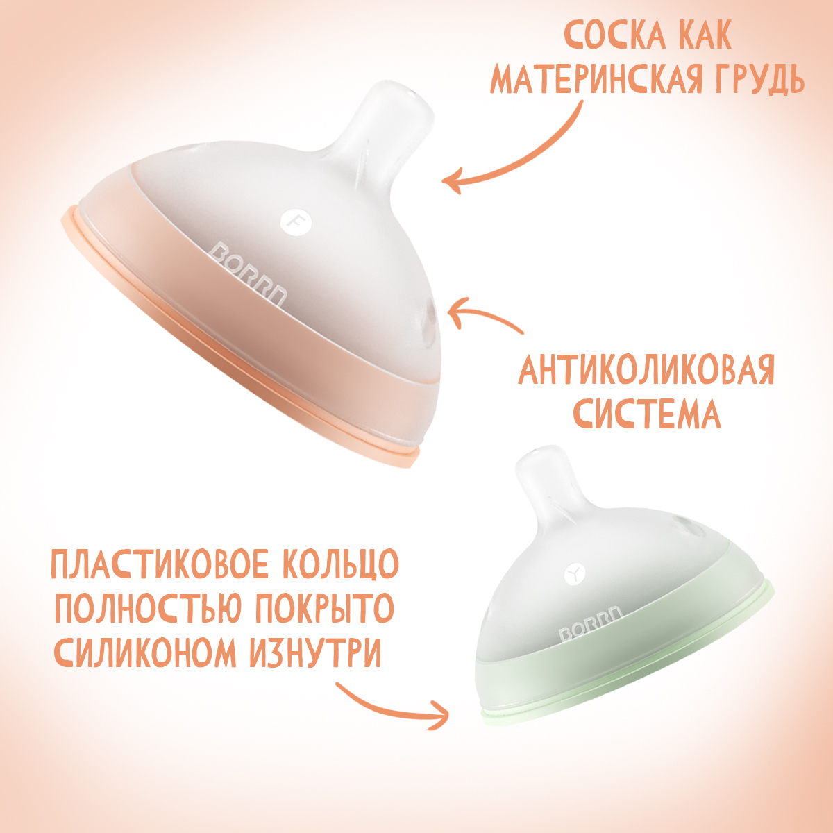 Сменная соска BORRN Variable flow Teat с переменным потоком, от 6 месяцев (зеленая)