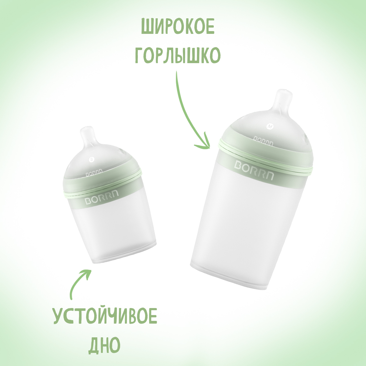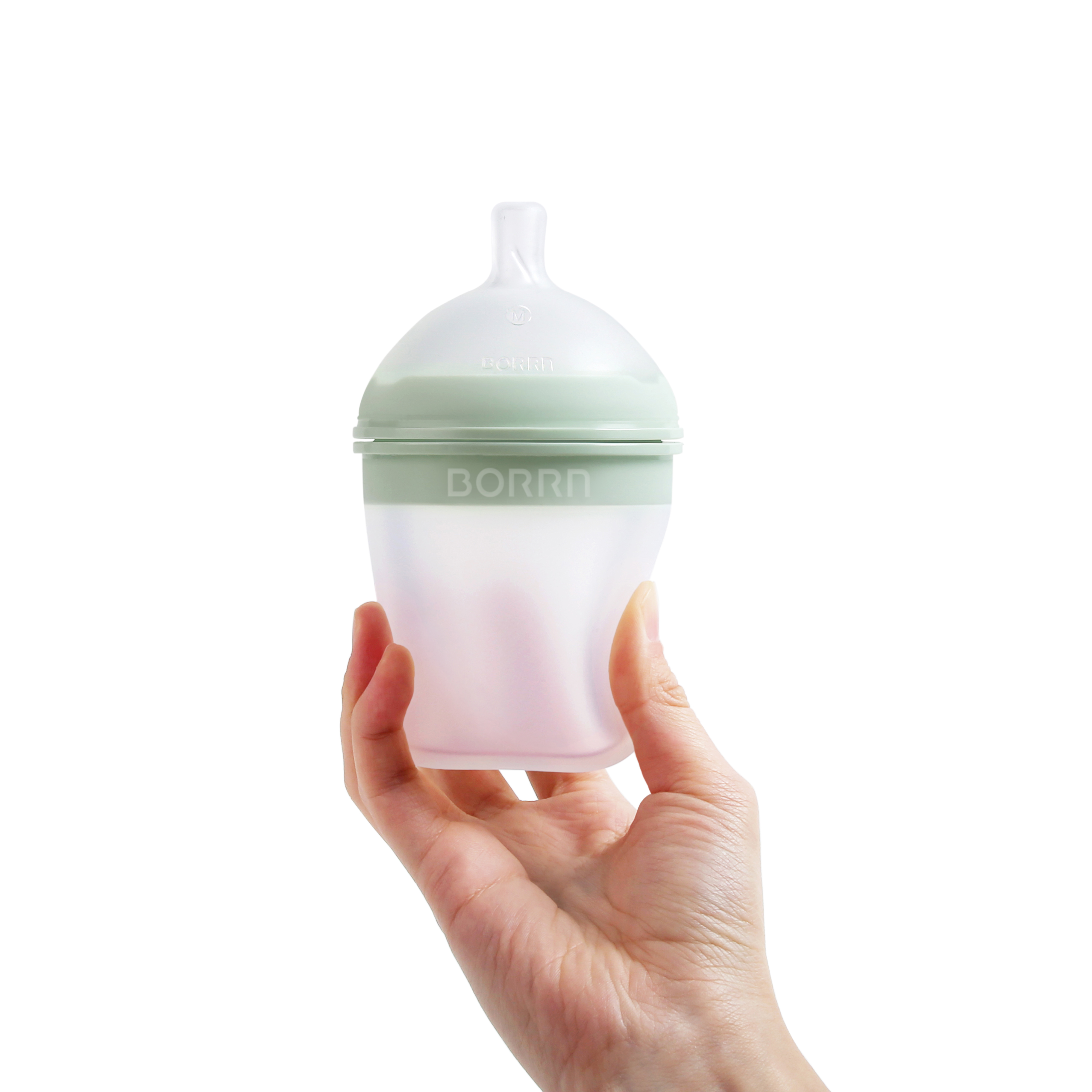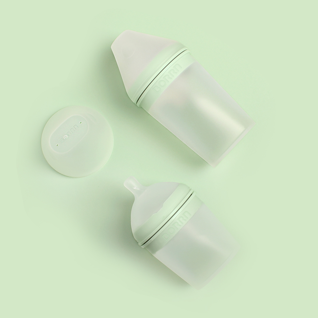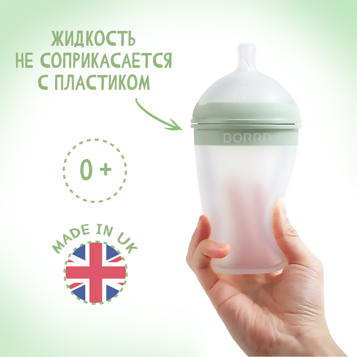 Бутылочка для кормления из силикона BORRN Baby Feeding Bottle, 240 мл, со средним потоком (зеленая)