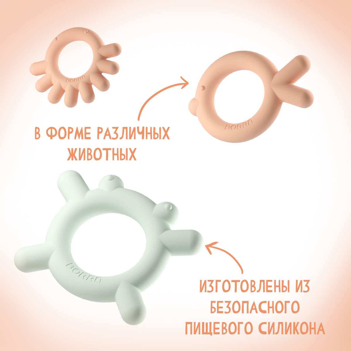 Детский прорезыватель для зубов BORRN из мягкого силикона, FISH (оранжевый)