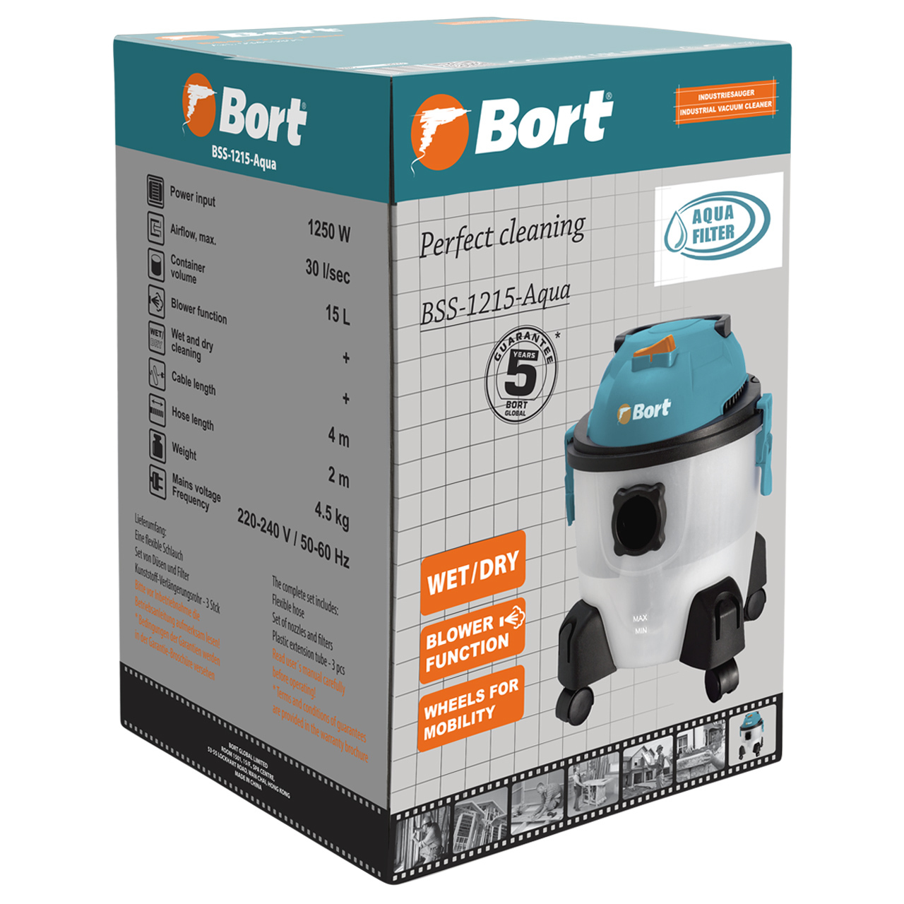 Промышленный пылесос Bort BSS-1215-AQUA 15 л, 1250 Вт