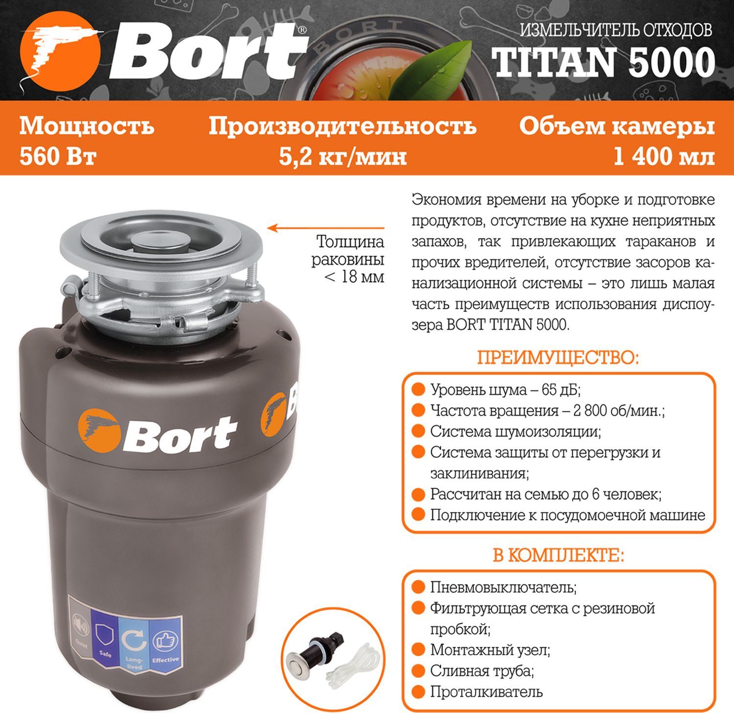 Измельчитель бытовых отходов Bort TITAN 5000