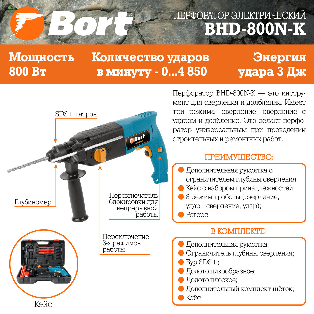 Перфоратор Bort BHD-800N-K 800 Вт От сети